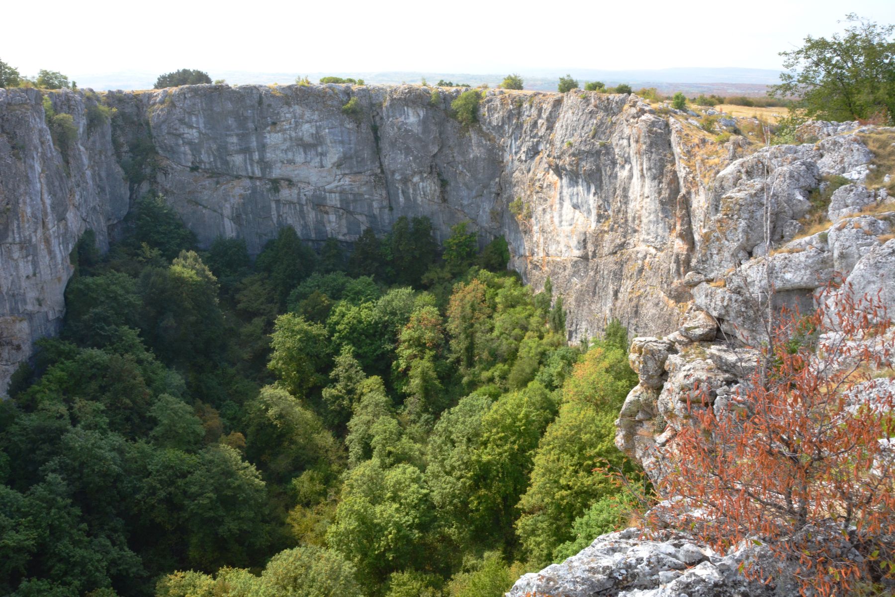 Nochmals tiefer wird der Eindruck, wenn man von der Verbindungsstraße zwischen Ponor und Quelle, der M6.1 abzweigt (43.700759, 17.125754) und ein Stück weit auf einem gut zu fahrenden Schotterweg durch die einmalige Karstlandschaft auf dem Höhenrücken nach Südosten fährt, vorbei an bis zu 50 Meter tiefen, steilwandigen Einsturzdolinen, die ein Bild davon vermitteln, welch riesige Höhlensysteme der Fluss hier ins Gebirge gegraben haben muss. Einige der Krater sind so beeindruckend, dass sogar die karstgewohnten Bewohner der Umgebung ihnen Namen gegeben haben. Es führen auch Pfade querfeldein, auf denen man diese grüne Mondlandschaft gut erkunden kann. Hierfür eignet sich ein Smartphone, mit dem man per Satellitenbild die einzelnen Einbrüche gut erkennen und finden kann.
