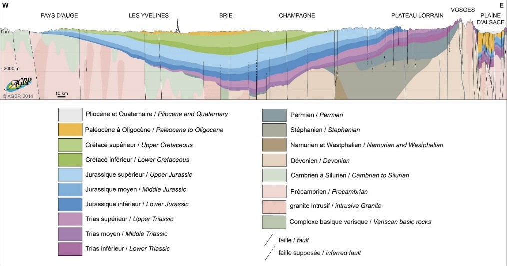 Die Geologie Frankreichs wird gemeinhin in das Pariser Becken, das Armorikanische Massiv, das Zentralmassiv, das Aquitanische Becken, die Pyrenäen, die Alpen, die Côte Languedocienne, das Sillon Rhodanien, das Vogesenmassiv, das Ardennenmassiv, den Rheingraben und das flandrische Becken unterteilt. Der Blick auf eine Karte zeigt die überaus komplexen geologischen Verhältnisse des Landes, die sich in seiner Hydrogeologie widerspiegeln.