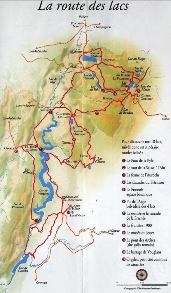 Die rund 70 Seen des Haut-Jura mit seinen Kalk- und Mergelketten aus dem Mesozoikum sind zum Teil mit geschmolzenem Eis gefüllt und ihr Wasser ist von wunderbarer Farbe. Sie sind Teil der bei Touristen besonders beliebten Karstgebiete Frankreichs, zu denen auch viele der grandiosen Schluchten und Höhlensysteme gehören. Von letzteren bringen es einige auf über 40 Kilometer Länge, in denen Grundwasserleiter und ganze Flüsse auf mehreren Etagen unterirdische Parallelwelten bilden. Den Wasserkreislauf der französischen Karstgebiete stellen wir unten gesondert dar.