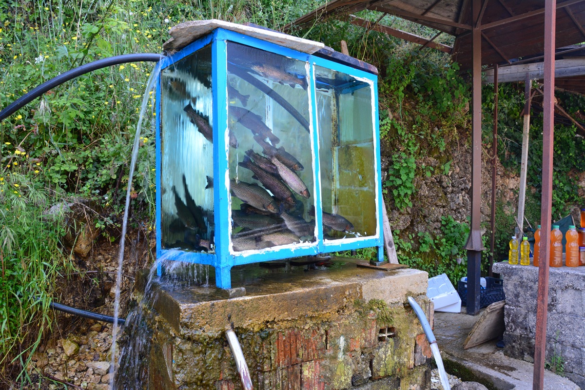 Fährt man auf der SH4 von Tepelene in südlicher Richtung nach Gjirokaster, so verlässt man schon am Ortsrand die Vjosa und fährt weiter am Lumi Drinos, der im griechischen Eprius entspringt, von wo er nach Norden fließt. Nach wenigen Minuten wird es unruhig am Straßenrand, Autos parken, Fußgänger laufen mit Flaschen und Kanistern am Bankett entlang. Verkaufsstände mit Honig, Schleckereien und allerhand Kram reihen sich an Restaurants und Aquarien voller Forellen. Manchmal herrscht ein solcher Trubel hier, dass die Polizei den Verkehr regeln muss. Man ist in Uji i Ftohte, übersetzt beim „kalten Wasser“, das dem ausländischen Touristen unbekannt, jedem Albanern aber ein Begriff ist.