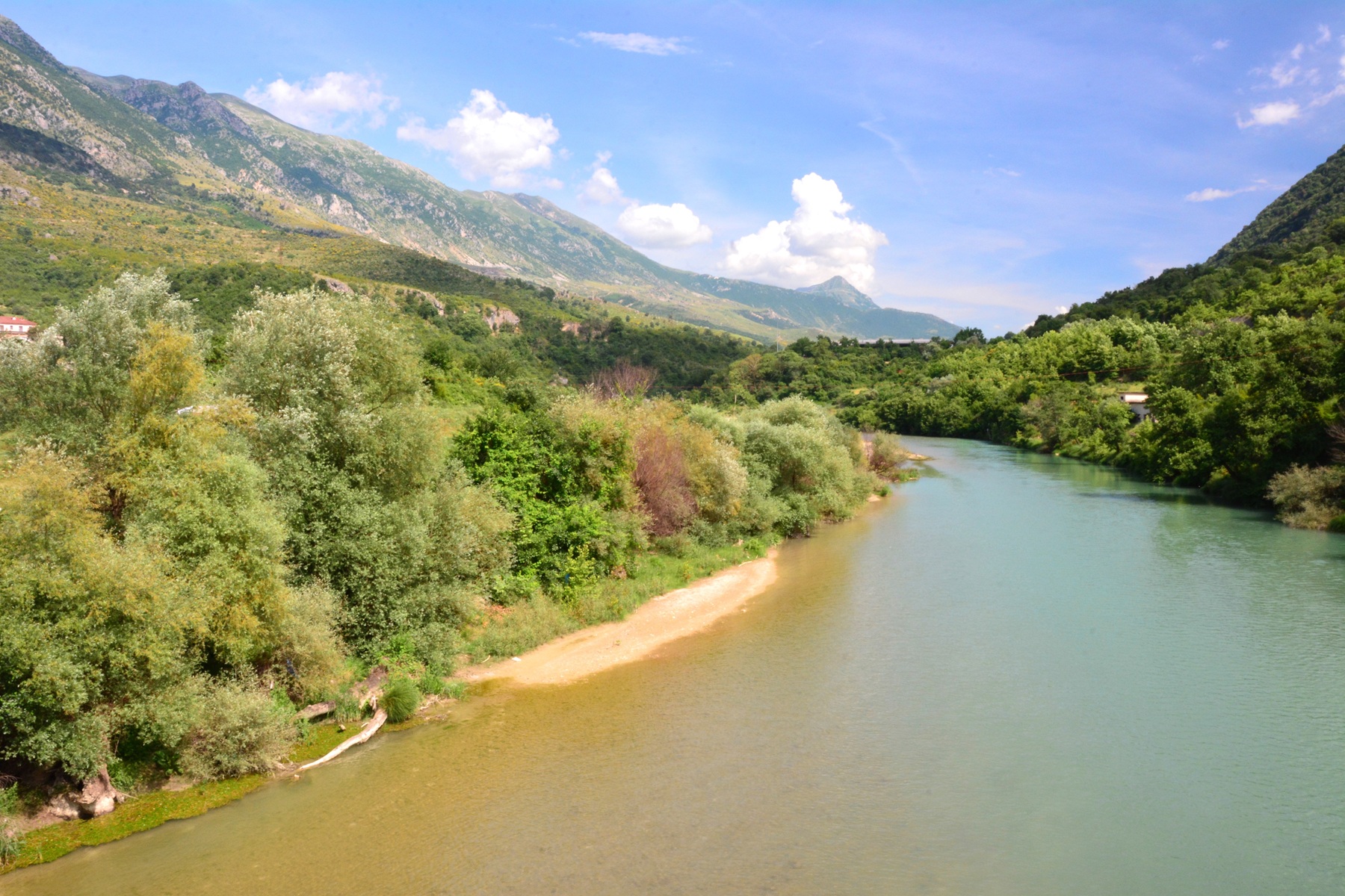 Wenn man zwischen Tepelene nach Gjirokaster unterwegs ist, sollte man hier unbedingt einen Halt einlegen. Einmal die Zeile mit Buden, Lokalen und unzähligen Brunnen entlanglaufen, in Ruhe einen Blick auf den wunderbaren Fluss werfen, sich hinter den Gebäuden auf die Suche nach ein paar der Quellen und Quellbäche machen und ihr Wasser kosten, und schließlich bei einem Kaffee das so typisch albanische Treiben auf sich wirken lassen.