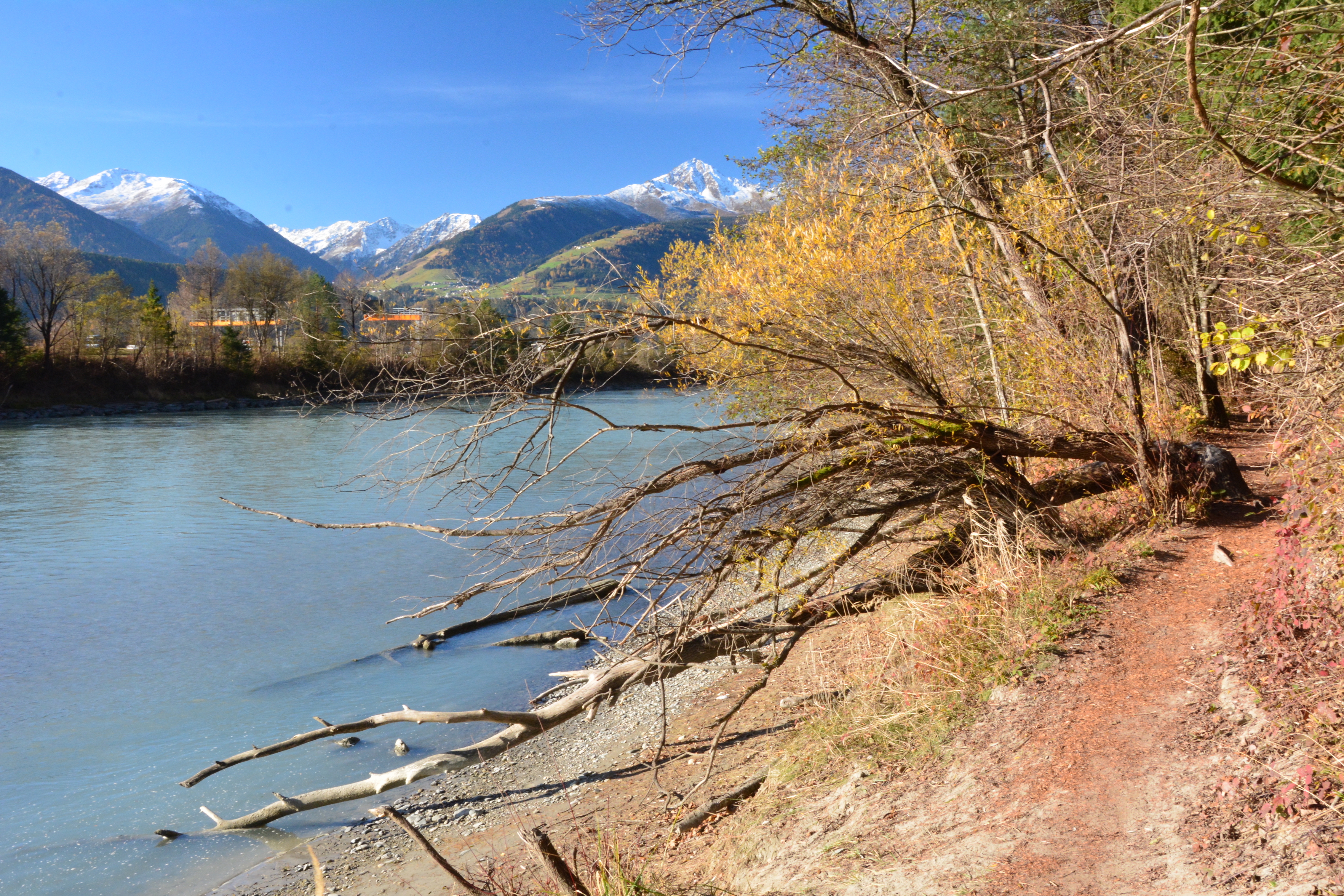 Das Geschenk eines breiten Tals, das der Inn im Lauf der Zeit durch die „Alpenrepublik“ gefräst hat, wird ihm heute schlecht gedankt. Seit jeher war das Inntal eines der wichtigsten in den Alpen, von großer wirtschaftlicher wie strategischer Bedeutung. Es hat schon in frühgeschichtlicher Zeit Völkerwanderungen erlebt, später Raubritter und aufblühende Städte. Mit beginnender Industrialisierung hat man den Fluss immer mehr kanalisiert und eingezwängt zwischen Autobahnen, Straßen, Eisenbahnstrecken, notwendige wie auch überflüssige Infrastruktur- und Gewerbebauten. Heute malträtieren Zersiedelung, Bausünden und eine unablässige Blechlawine den Talkessel unterhalb majestätischer Berge.