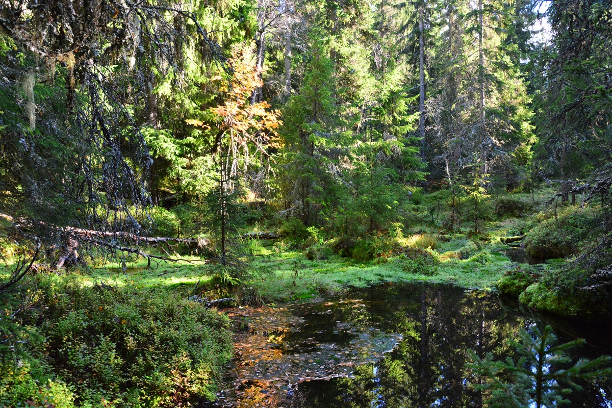Die besten Chancen hat man auf einem schönen Wanderweg, der beim Haus Grävlingstigen 2A vom Jens-Britta Väg nach Süden hinabführt. Hier quert man bald auf Stegen zwei Bäche, denen man nur einige Meter weit bis zu ihren Quellarealen folgen muss. Die insgesamt etwa sechs Wasseraustritte schütten für schwedischen Verhältnisse relativ stark und die Quellbäche haben ein teils sandiges Bett, wie man es hier in dieser moorigen Gegend nicht vermutet. Andererseits ist das Wasser leicht dunkel gefärbt und es trägt große Schaumkronen, die durch Huminstoffe und organisches Material verursacht werden - eine seltene Kombination, wie man sie beispielsweise in Deutschland kaum antrifft.