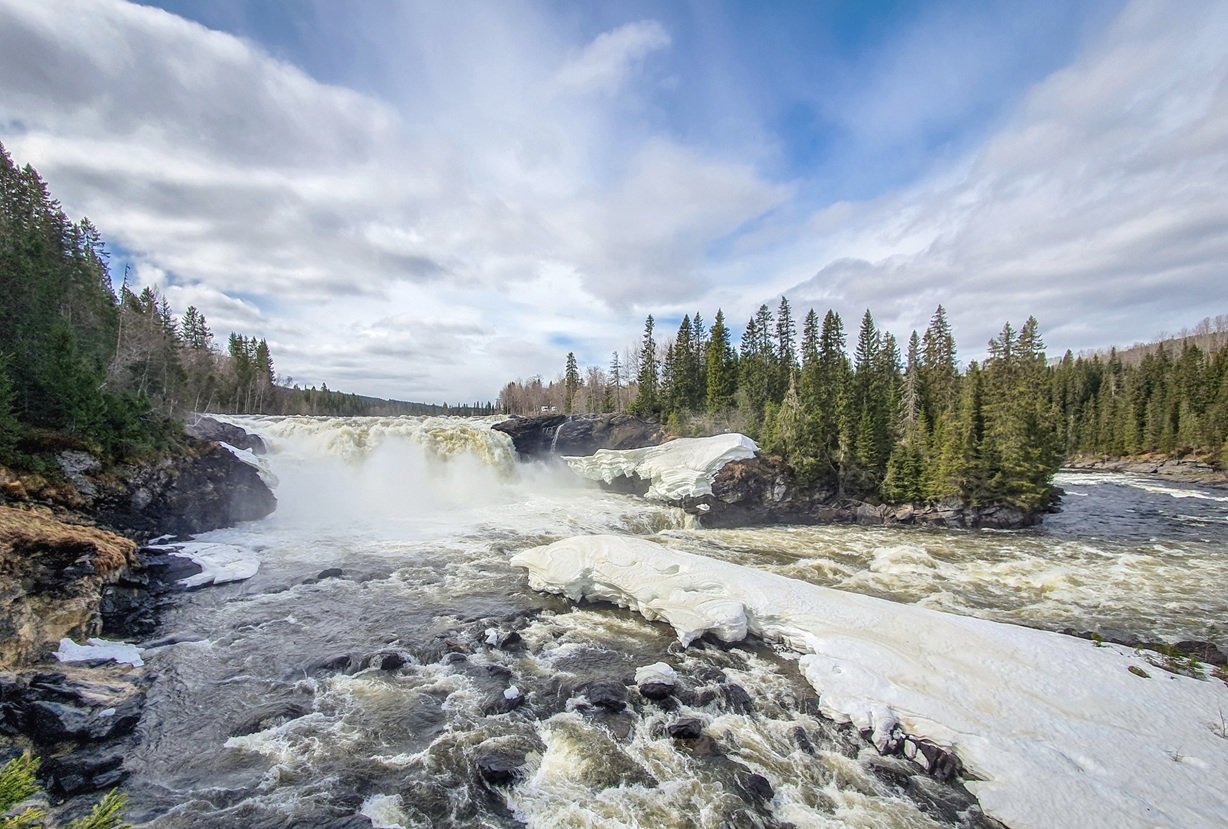 Der Ristafallet in der Provinz Jämtland liegt am St. Olavsleden (https://www.wanderzentrale.de/st-olavsleden-pilgern/), einem 564 Kilometer langen Pilgerweg, der vom Nidarosdom in norwegischen Trondheim über die Grenze bis ins kleine schwedische Selanger führt. Der Wasserfall gilt als einer der schönsten in Schweden. Je nach Jahreszeit stürzt der Fluss Indalsälven mit Wassermengen von 100 bis 400 m3/s über eine Geländekante 14 Meter tief hinab. Dabei zerstäubt die tobende Gischt so stark, dass selbst in der trockenen Jahreszeit ein feuchtes Milieu entsteht, in dem seltene Flechten, Moose und Gräser gedeihen, weshalb die Wälder an den Flussufern einen besonderen Schutzstatus erhalten haben.