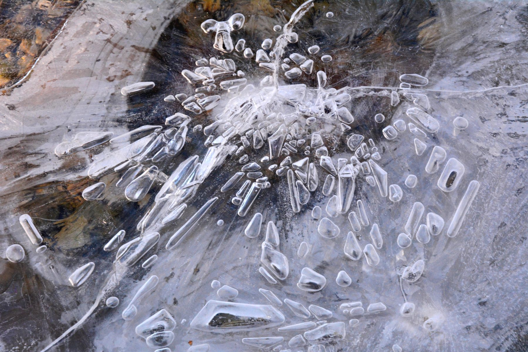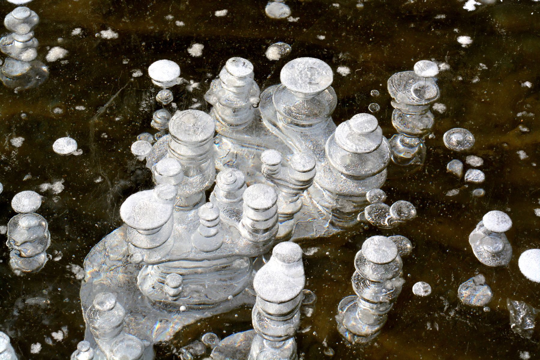 Wer sich Zeit nimmt kann in Ruhe eintauchen in die wunderbare Welt der Wasserwunder und durch Beobachten lernen, sie ein Stück weit zu verstehen: die unendliche Formenvielfalt zerbrechlicher Eiskristalle und Schneeflocken, saftige Brunnenkresse und leuchtendgrüner Wasserstern, das Lichterspiel von flüssigen Wasserkristallen, Wellen und Wirbeln, Sinterterrassen und gefrorene Wasserfälle, filigrane Libellen und schwerfällige Erdkröten, schillernder Biofilm auf Drainagegräben, Wasserläufer, blubbernde Methangasblasen. Wer wenig Zeit mitbringt, für den haben wir ein paar fotografische Kostproben zusammengestellt als Anregung, beim nächsten Spaziergang das Wasser doch einmal genauer zu betrachten.