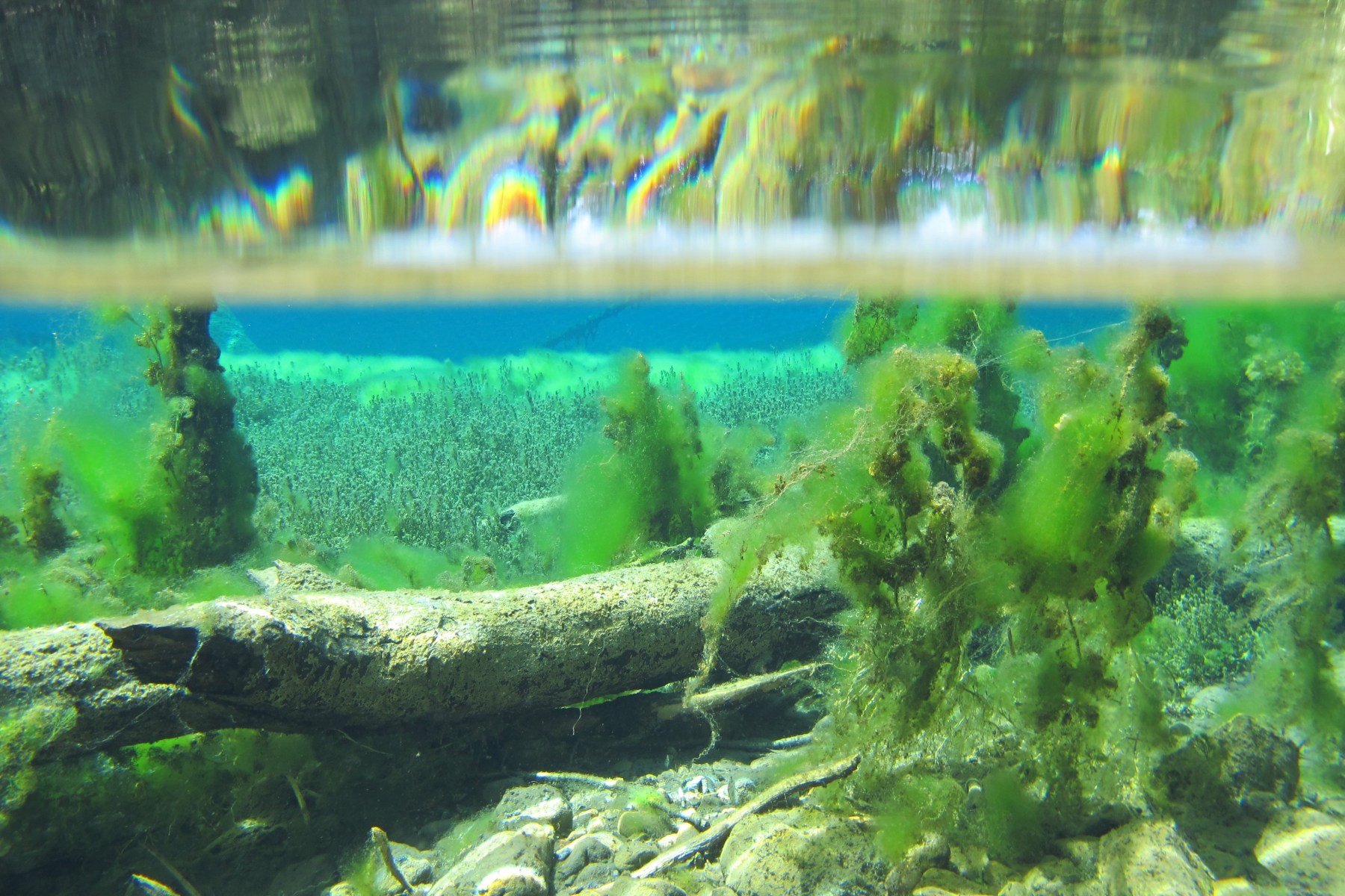 Die Alge Prymnesium parvum soll im Sommer 2022 wegen des zu hohen Salzgehaltes im Wasser der Oder wesentlich zu dem verheerenden Fischsterben beigetragen haben. Algen und Bakterien scheiden nicht nur Gifte ab, sondern sie zehren auch den Sauerstoff auf, wenn sie abgestorben auf den Grund von Gewässern sinken und sich dort zersetzen. Andere Algentypen überwuchern Pflanzen. Gerade in Karstgebieten sind viele der Wasserpflanzen stark bedroht, da sie an nährstoffarmes Wasser angepasst sind. Selbst in den Quellen, deren Wasser ausdrücklich nährstoffarm sein sollte, haben sich dort in den letzten Jahrzehnten ganze Rasen von Schleim- und Kieselalgen breitgemacht (Bild unten rechts). Im den Wässern des Balkans, wo Landwirtschaft vorwiegend extensiv betrieben wird, sind diese Algen trotz intensiverer Sonneneinstrahlung und entsprechend höherer Wassertemperaturen noch kaum zu finden.