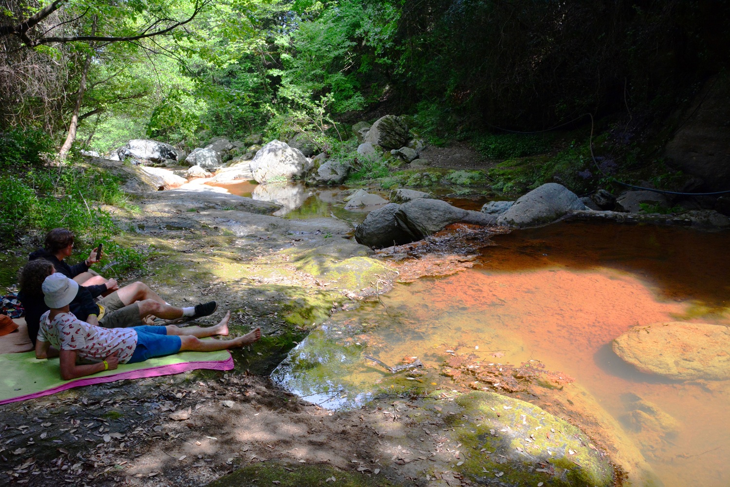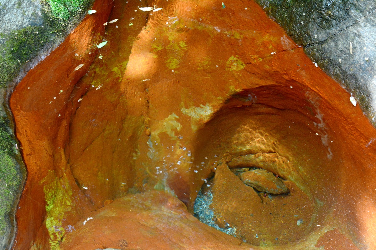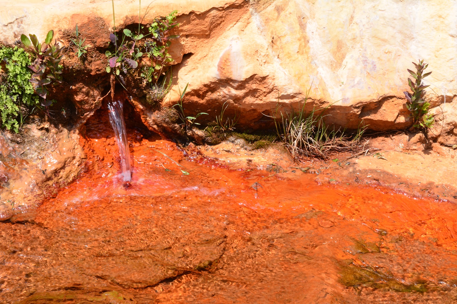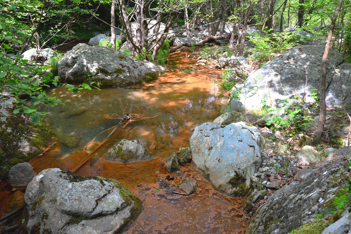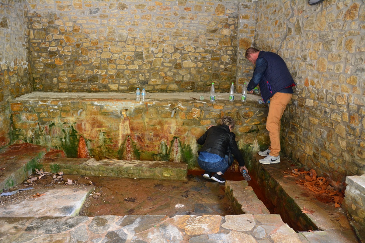 Zudem handelt es sich um ein recht großflächiges Quellgebiet, in dem das Mineralwasser artesisch aufsteigt. Landschaftlich besonders schön ist das etwa 800 Meter Luftlinie entfernte „oko Zeusa“ (Auge des Zeus). So wird ein kleiner Abschnitt am Flüsschen Kalypso genannt, das aus dem Küstengebirge viele hundert Meter hinab zum Meer fließt und dabei einige hübsche Wasserfälle bildet. Wo das Wasser am Unterlauf in ebenes Gelände eintritt, sprudeln mehrere Quellen direkt aus dem Flussbett, das dadurch rot gefärbt ist. Besonders schön ist das Auge des Zeus, ein roter Strudeltopf, in dem das Eisenwasser zusammen mit Gasblasen aufsteigt, die durch die Entspannung des artesischen Wassers entstehen.