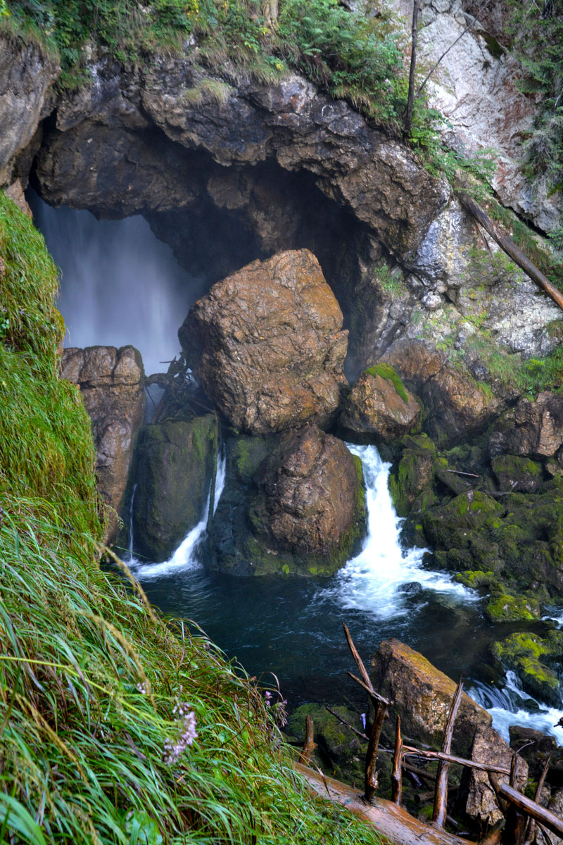 Einen besonderen Reiz erhält der Gollinger Wasserfall durch seine Nachbarschaft zum wasserreichen Bluntautal. Beides kann man von einem Parkplatz aus in einer überaus schönen Wanderung verbinden, die auch für Kinder gut geeignet ist und sich als Radtour eignet.