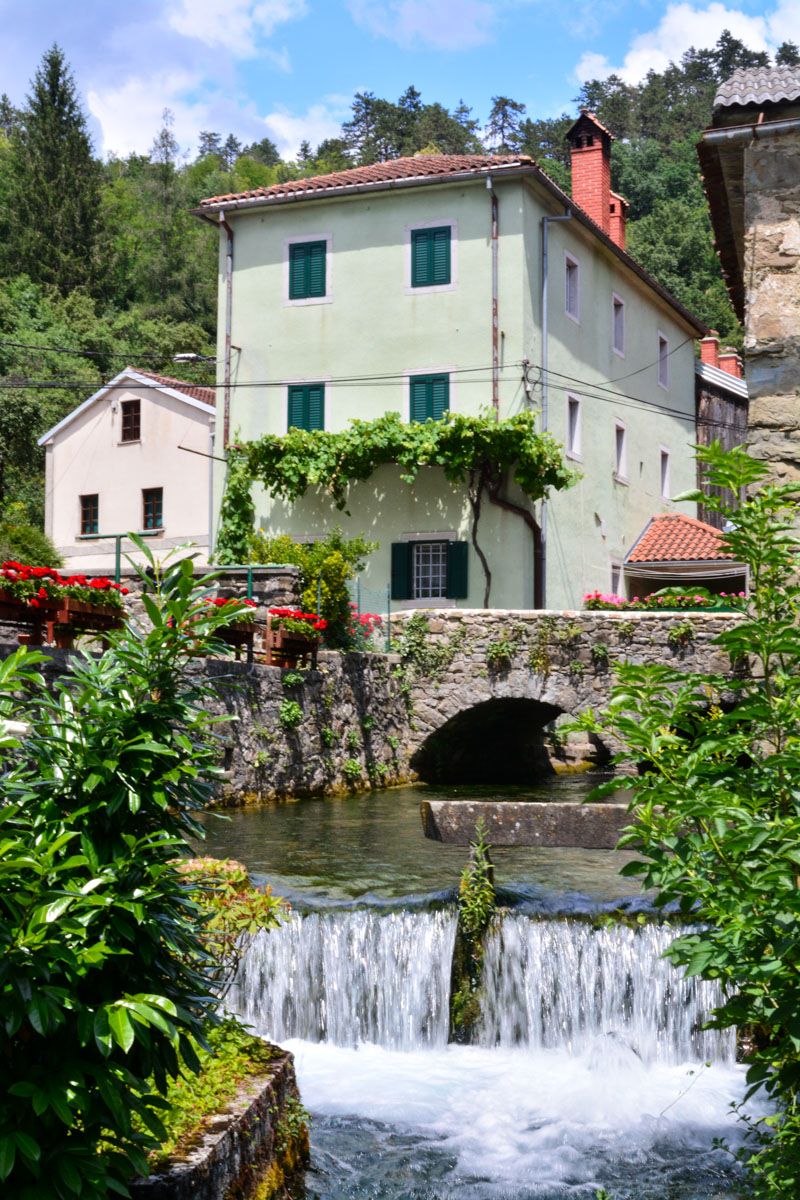 Bistricaquelle und Wasserfall lassen sich mit einer kleinen Wanderung durch den hübschen Ortsteil Bistrica verbinden, der zugleich die eigentliche Altstadt von Ilirska Bistrica ist.