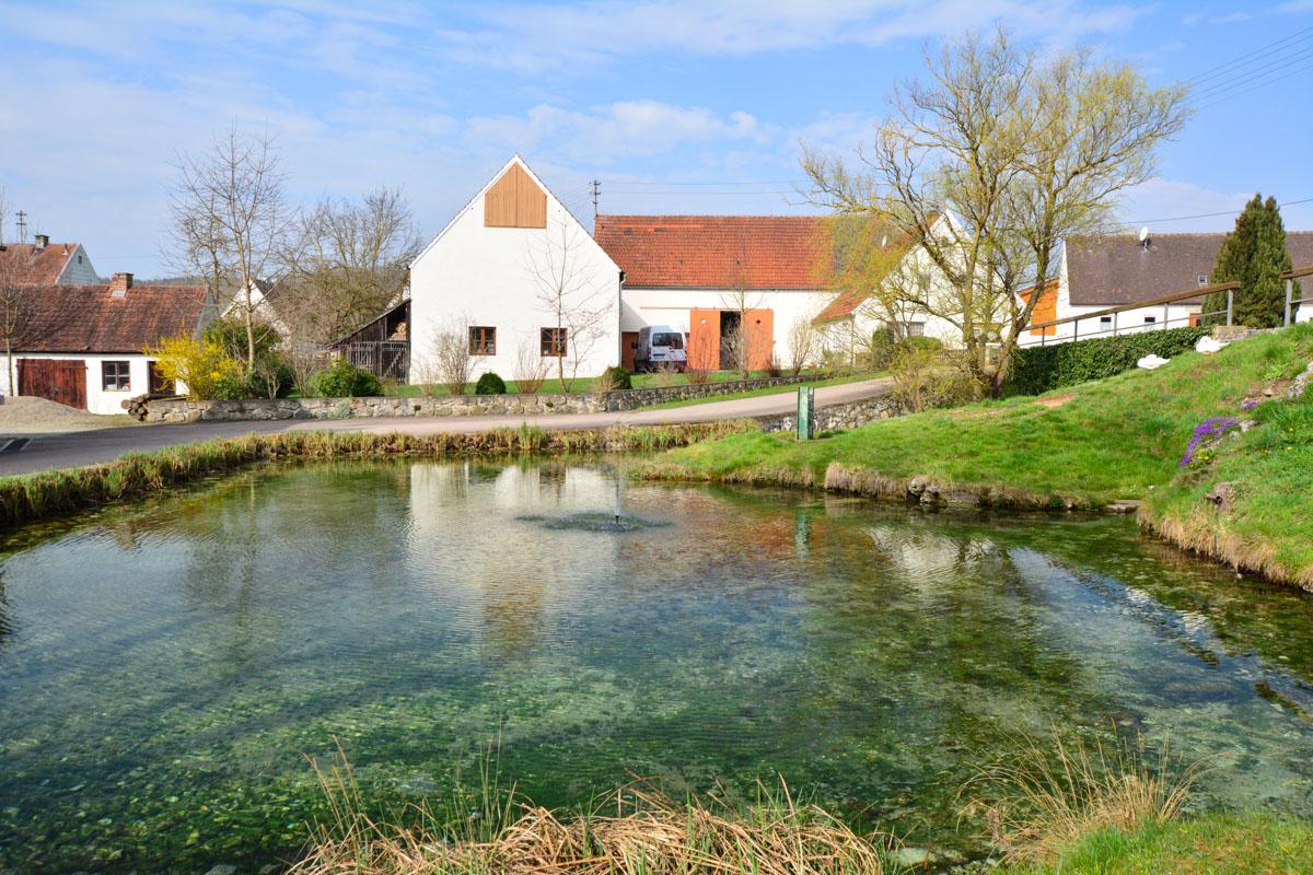 Die noch nie versiegte Tümpelquelle, die glasklares Wasser fördert, diente bis 1974 zur Wasserversorgung des Ortes Brünsee. Der abfließende Bach mündet nach etwa 30 m in einen Altarm der Wörnitz. Seine Wasserkraft wurde früher zum Betrieb einer Papiermühle genutzt.
