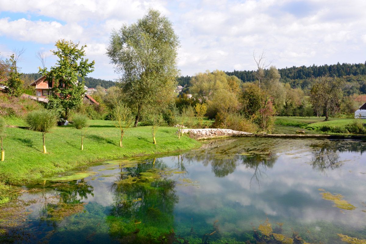 Der nur wenige Kilometer lange Fluss Radescica in der Nähe von Dolenjske Toplice speist sich aus zwei Quelltöpfen, die in den gängigen Kartenwerken nicht näher benannt sind. Die Radescica mündet von Süden her in den Fluss Krka.