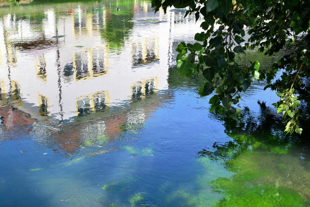 Auf der gegenüberliegenden Talseite befinden sich direkt an der B 19 benachbart die Quelle des Pflusterbachs (48.663256, 10.156944) und etwas nördlich die Goldquelle (48.663260, 10.156943), die zusammen den Pflusterbach bilden. Beide sind allerdings kaum zugänglich.