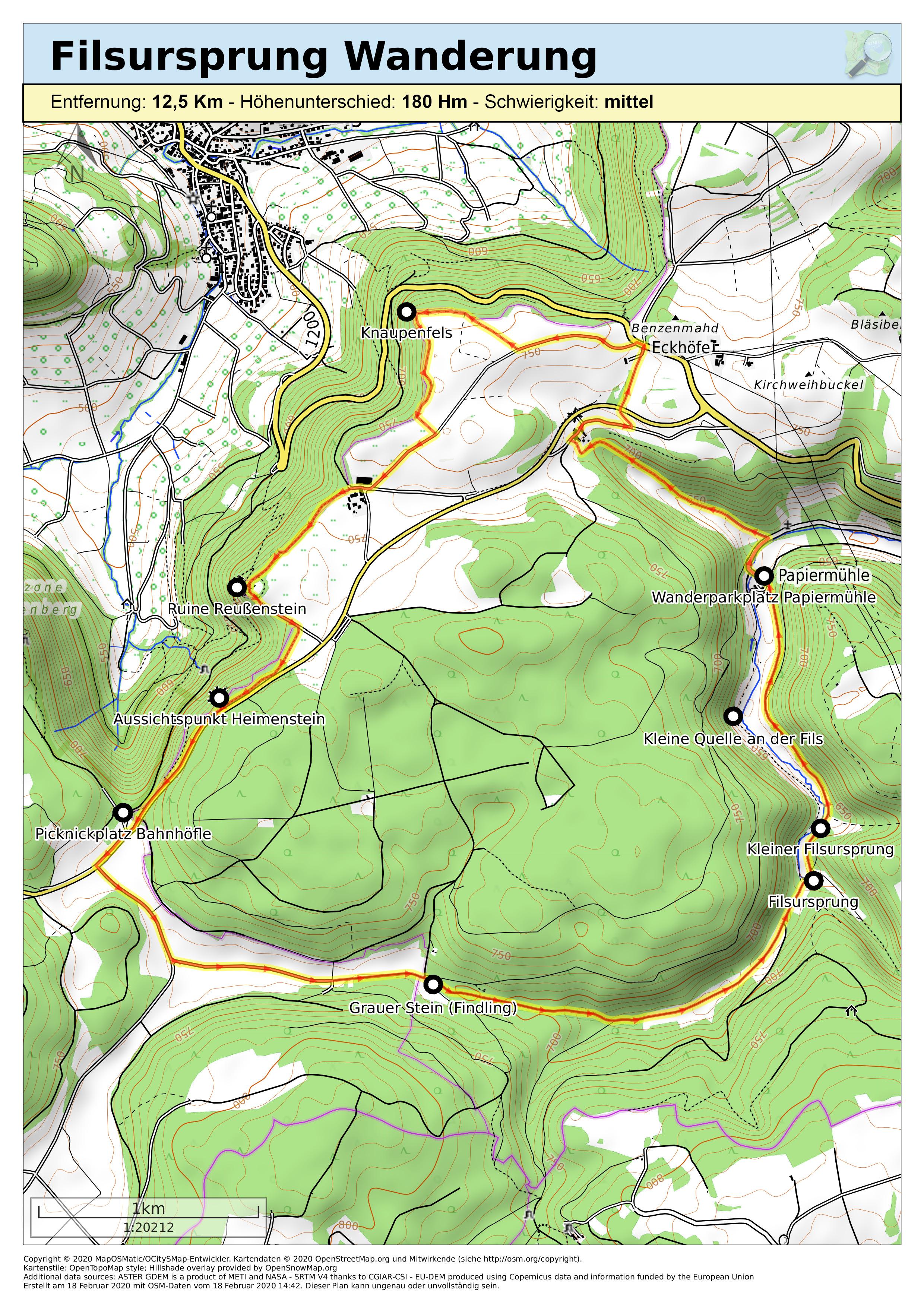 Wanderung Filsursprung - Entfernung: 12,5 Km - Höhenunterschied: 180 Hm - Schwierigkeit: mittel