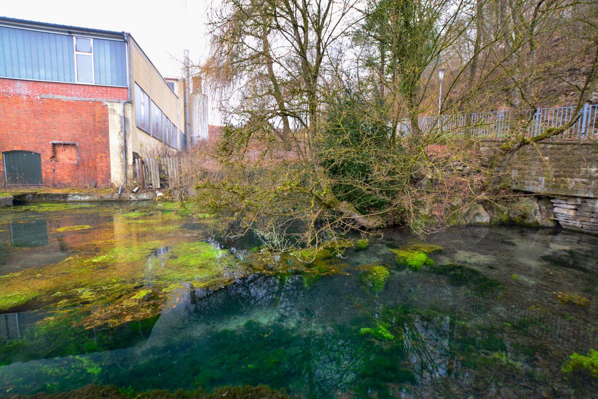 Ihr Quelltopf weist eine etwas schwächere türkis-blaue Färbung und anderen Pflanzenbewuchs auf als der Brenztopf in etwa 700 m Entfernung an der gegenüberliegenden Talseite.