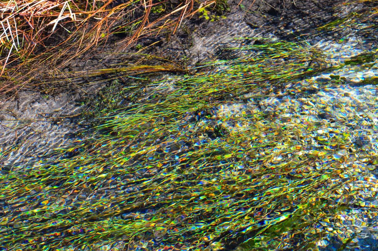 Von den Sieben Quellen bei Eschenlohe kommend führt ein außerordentlich schöner Wander- und Radweg weiter durch das Pfrühlmoos nach Süden zu den Quellen des Lauterbachs bei Oberau und dem Röhrlbachursprung. Nach der Überquerung des Lauterbachs (47.558646, 11.157752), in dessen eiskaltes Wasser man bei heißen Temperaturen kurz eintauchen kann, folgt man auf freiem Feld dem geteerten Weg weiter zum Golfplatz. Auf ihm sind zwei der drei Quellen des Lauterbachs gelegen, eine davon ein Quelltümpel mit der typisch türkisen Färbung von Karstquellen und einem lichten und schönen Pflanzenbewuchs. Die dritte der Lauterbachquellen liegt an einem Waldweg, der direkt östlich des Golfplatzes liegt.