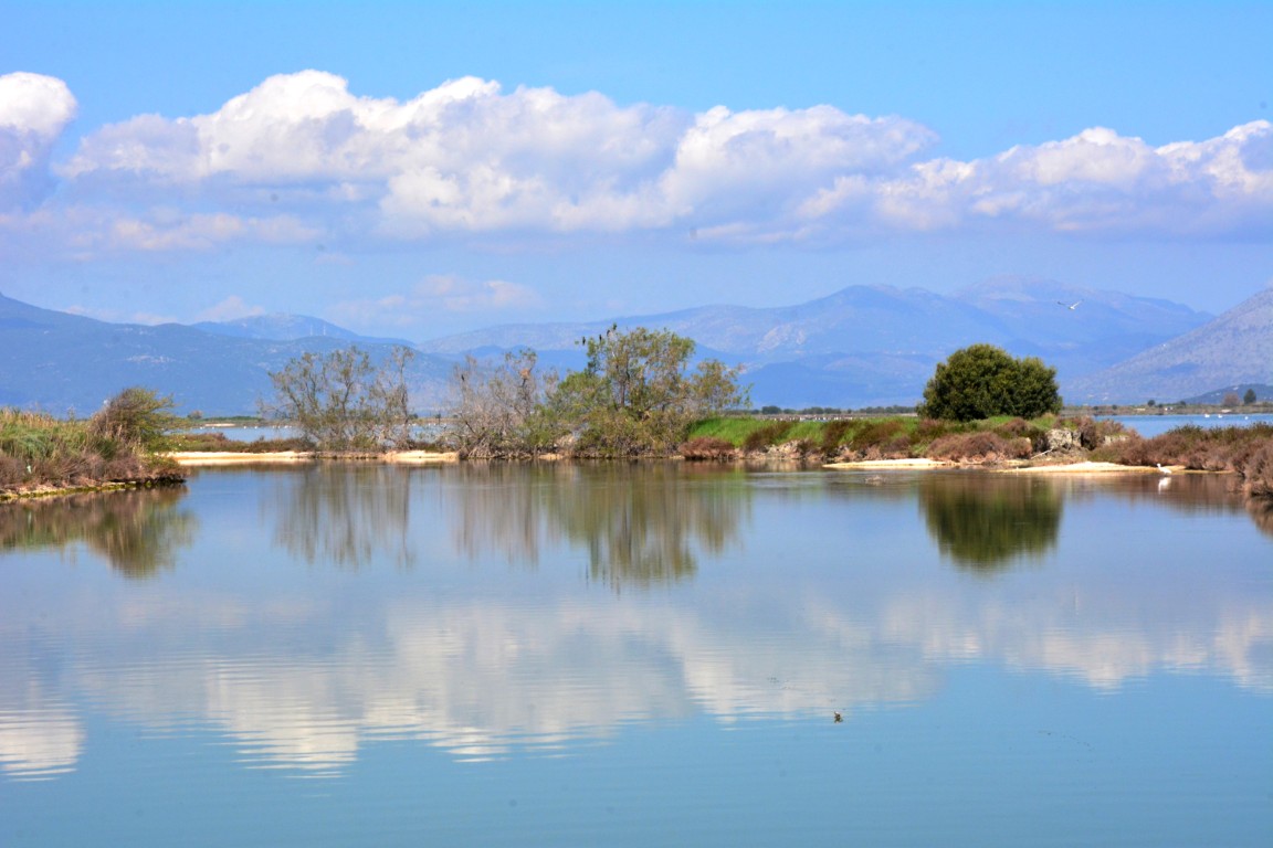 In den Feuchtgebiet nahe der Küsten, etwa am Golf von Amvrakikos oder im Strofylia National Park im Nordwesten der Peloponnes, haben sich Süß- und Salzwasser - je nach Höhe des Meeresspiegels - immer wieder zu Brackwasser vermischt und Vogelparadiese geschaffen. Einer der spannendsten Seen Griechenlands ist der nordwestlich von Loutraki gelegene, 40 Meter tiefe Vouliagmeni-See (Makrigoas-Vouliagmeni Lake) mit seinem glasklaren und wunderbar gefärbten Wasser. In dieser ruhigen Ecke Griechenlands gelegen, wird er zumeist verwechselt mit seinem wesentlich bekannteren Namensvetter, dem Thermalsee Vouliagmeni im Süden Athens. Der Limni Makrigoas-Vouliagmeni wird aus Quellen gespeist, bei Flut aber vor allem über einen schmalen Kanal mit Wasser aus dem Golf von Korinth. Dabei entsteht eine kräftige Strömung, die sich bei Ebbe umkehrt. Entstanden sein soll er durch einen Bergsturz.