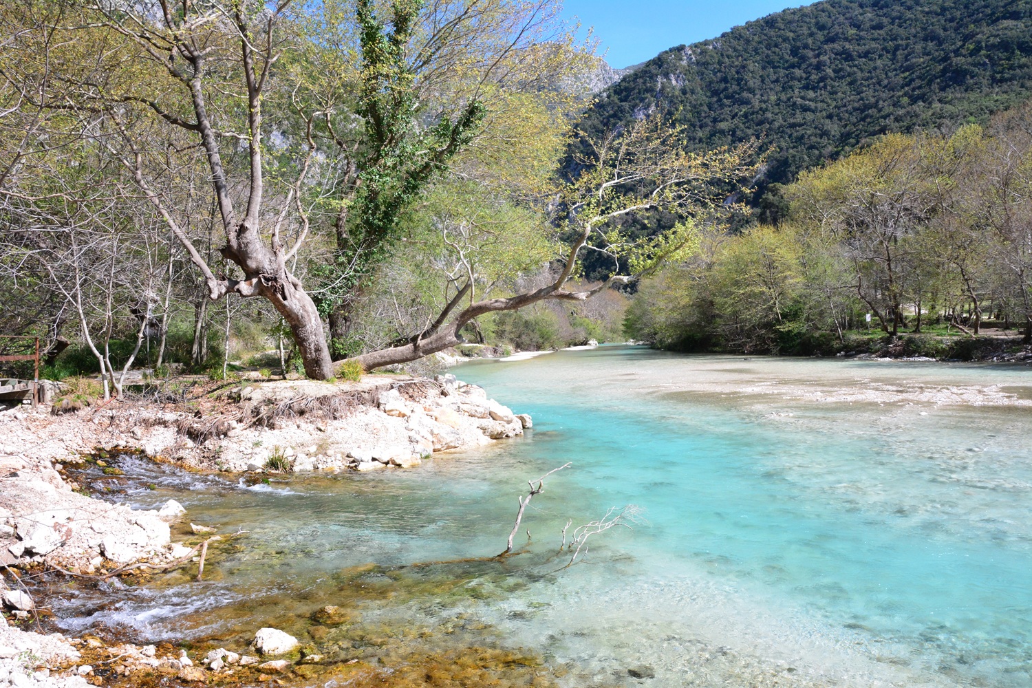 Die Quellen des Acheron sind davon kaum betroffen. Ihr Wasser wird in den unterirdischen Ablaufsystemen gefiltert und ist fast immer glasklar mit türkisem Schimmer und einem sehr breiten Lichtspektrum. Der Sonnenschein wird an den flüssigen Kristallen des Quellwassers in fast alle Farben gebrochen und das vitale Quellwasser bildet lange Wirbelstrassen, die am sandigen Boden als dunkle runde Schatten sichtbar werden. Der kurze Spaziergang entlang der Quellengruppe bietet vielfältige und wunderbare Eindrücke: uralte und knorrige Bäume mit beeindruckendem Wurzelwerk, flinke Eidechsen, Libellen, Quellen die durch ihre Schönheit bestechen oder in denen unablässig Gasblasen aufsteigen und kleine Sandvulkane tänzeln.
