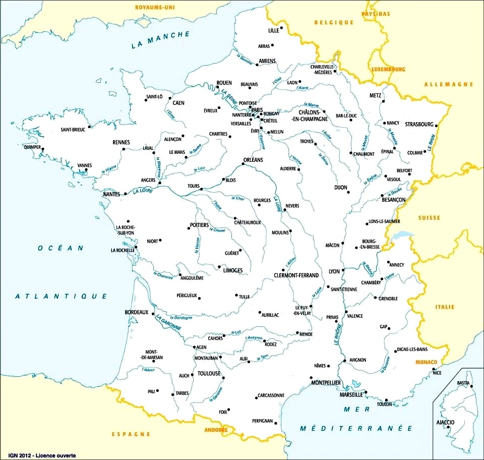 Nicht weniger abwechslungsreich als die Fließgewässer sind die Küsten. Sie reichen von der Jadeküste und grandios abfallenden Kreidefelsen an der Nordsee über die stark gegliederten und von Wellen umtosten Küsten am Atlantik bis zum Mittelmeer mit Côte d‘Azur, Camargue und den bekannten Salzwasserlagunen (Ètangs), den größten Seen Frankreichs.