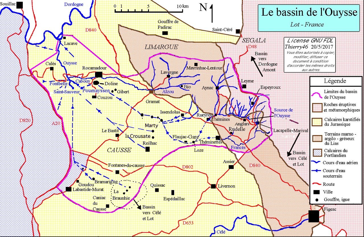 Eines der hydrogeologisch interessantesten Gebiete ist das Vallée de la Dordogne, das wegen seiner außergewöhnlich hohen Zahl an Höhlen, Grotten und anderen unterirdischen Formationen auch als „Tal der tausend Höhlen“ bezeichnet wird. Hier verläuft unter anderem die geologische Verwerfung von Meyssac, an der mehr als 200 Millionen Jahre alter Sandstein des Zentralmassivs auf jurassische Kalksteinsedimente trifft, die einige zehn Millionen Jahre später abgelagert wurden. Schon die Jäger und Sammler im Magdalénien vor etwa 13.500 bis 12.500 Jahren suchten während der ausgehenden Eiszeit Schutz in diesen Höhlen, wie zahlreiche Funde von Skeletten, Werkzeugen und Schmuck zeigen. In einigen haben sich großartige Wandmalereien erhalten, etwa in der Grotte von Lascaux, die im Vergleich zu anderen Höhlen des Périgord relativ trocken ist, da sie von einem Mergelhorizont abgedichtet wird.