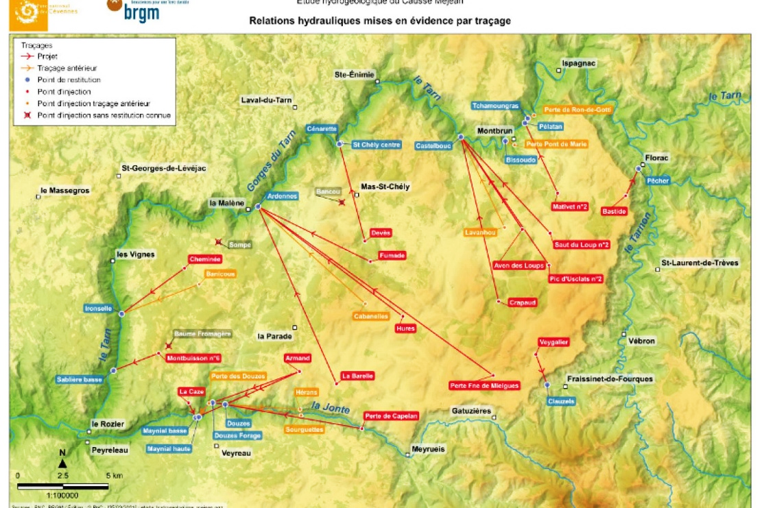 Unterirdische Wasserläufe im südwestlichen Departement Lozere