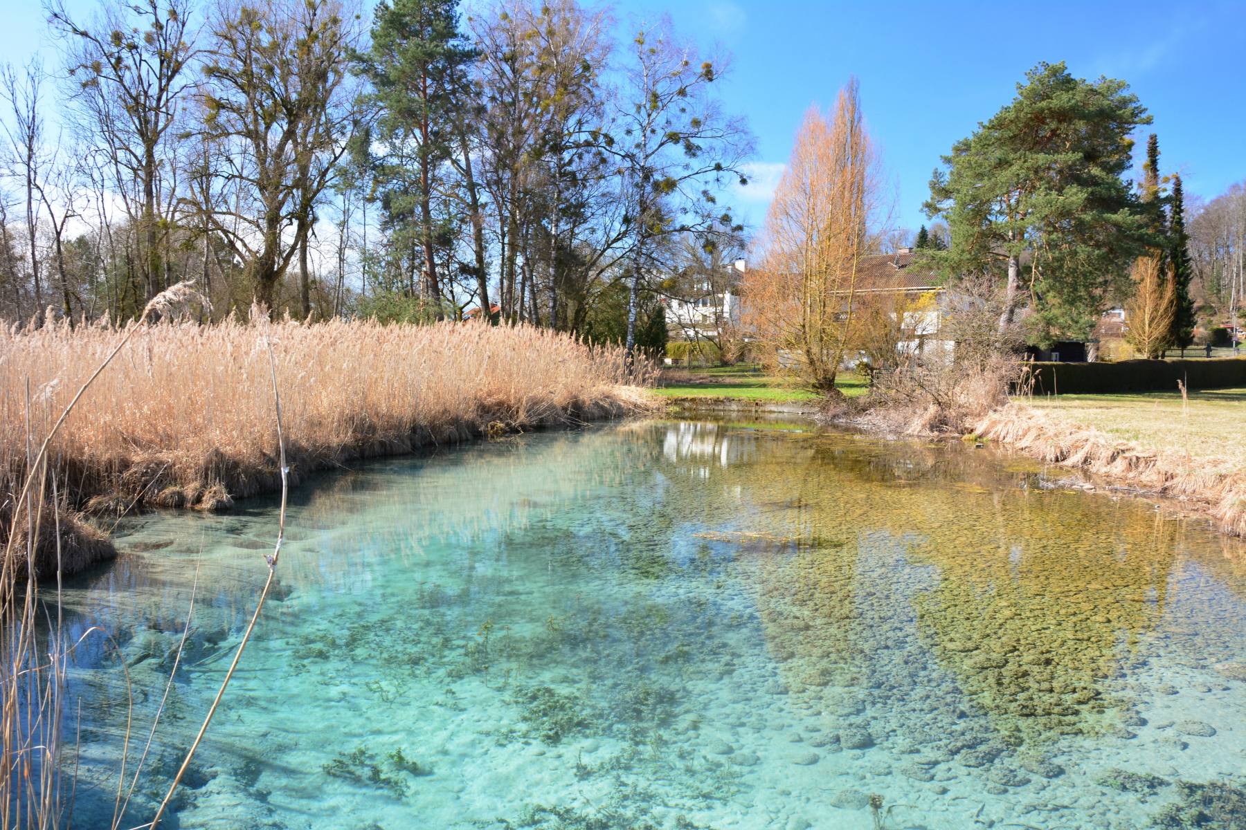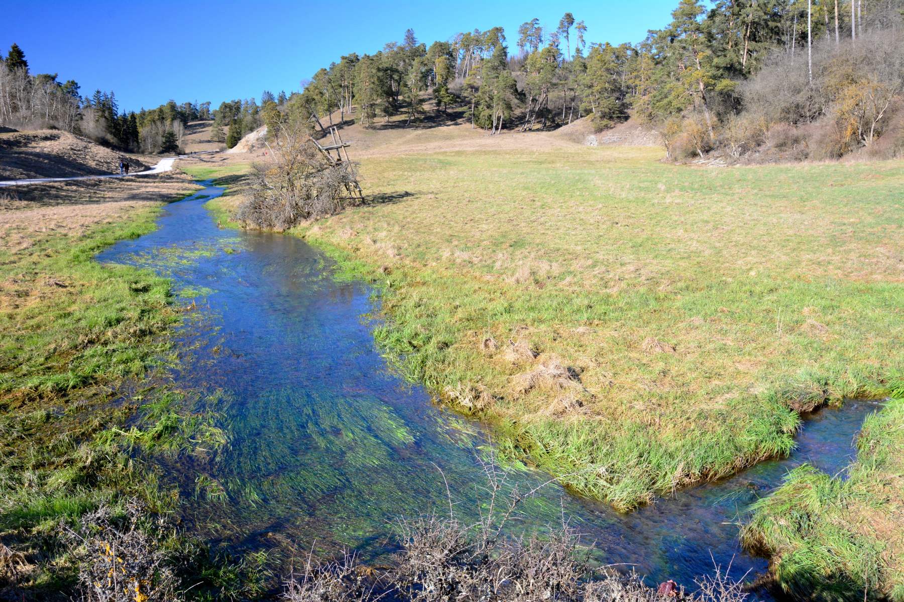 Vor allem im Winter, Frühjahr und Frühsommer sind viele Quelltöpfe im Karst wegen ihres glasklaren Wassers von leuchtend blauer oder grüner Farbe außerordentlich schön. Während der Schneeschmelze und nach Starkregen kann sich ihr Wasser durch mitgespülte Sedimente allerdings so stark eintrüben, dass es graubraun aus der Erde schießt. Im Verlauf des Sommers bilden sich in und auf vielen Tümpeln wegen ihres mittlerweile hohen Nährstoffgehaltes dann braune und schleimige Algen, die der ursprünglichen Flora den Lebensraum streitig machen. So sind manche Arten von Armleuchteralgen, Laichkraut, Wasserstern und Quellmoos inzwischen selten geworden.
