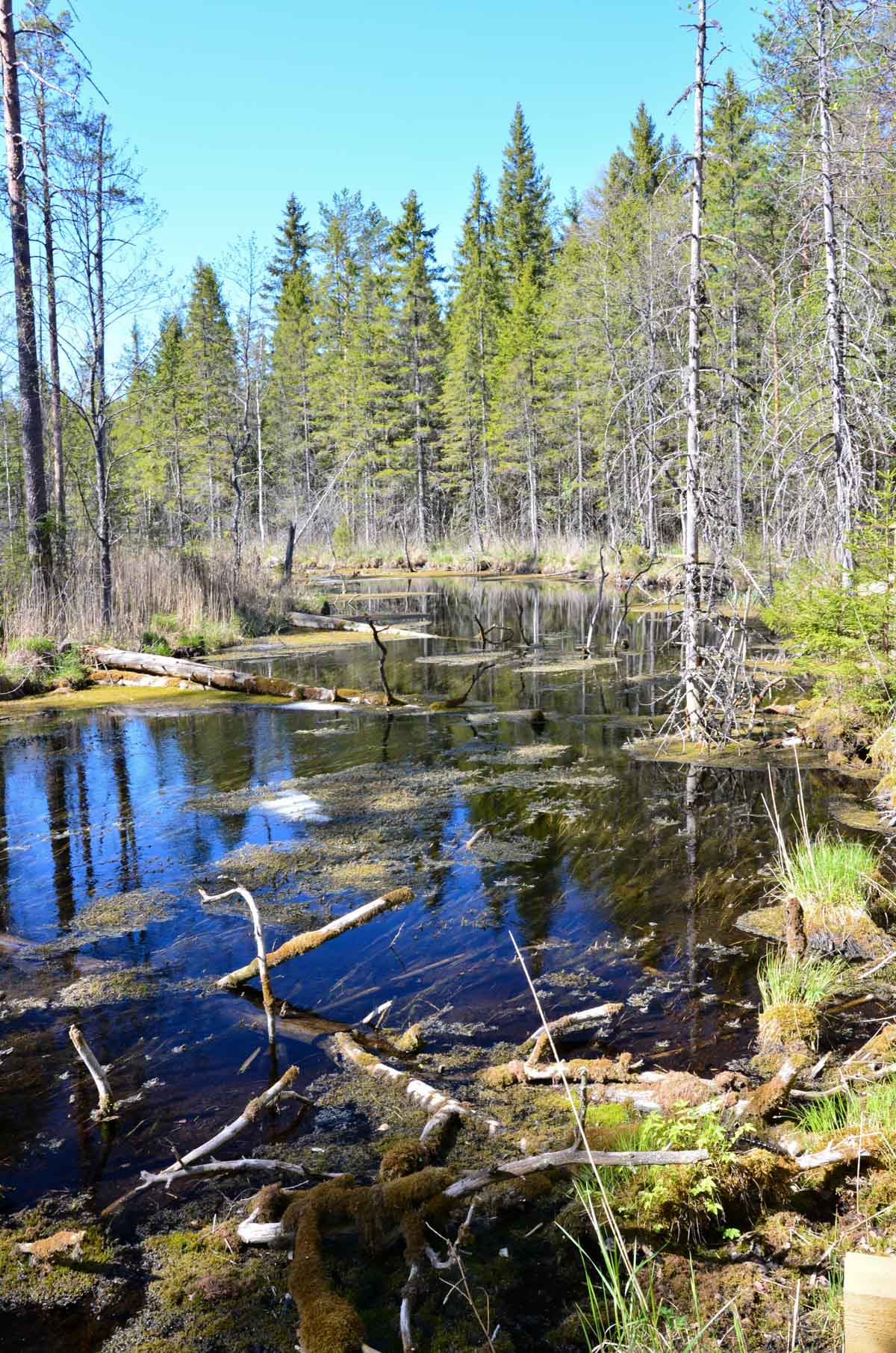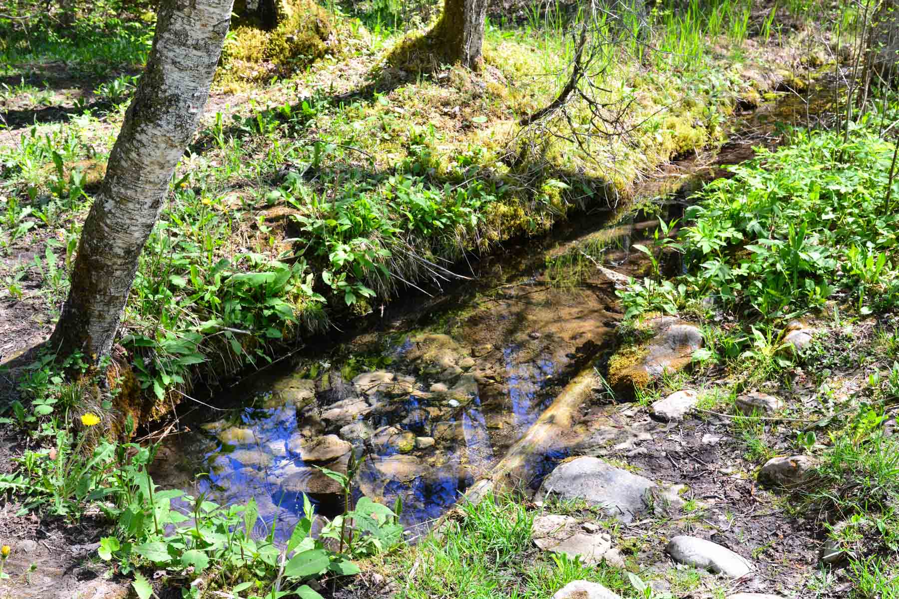 Während die Tothölzer direkt an den Quellaustritten wegen der dort sehr niedrigen Wassertemperaturen nur sehr langsam vermodern, teilweise auch versteinern, bilden sich andernorts an den umgestürzten Bäumen bald Moose und Pflanzengemeinschaften.
