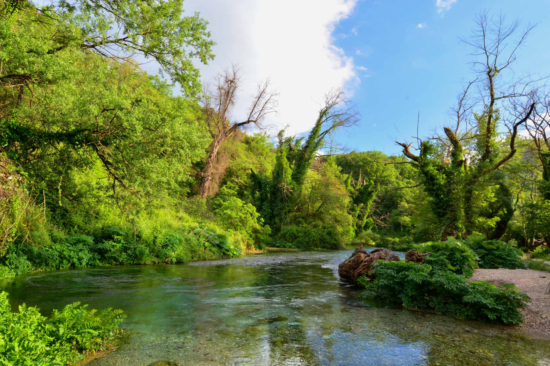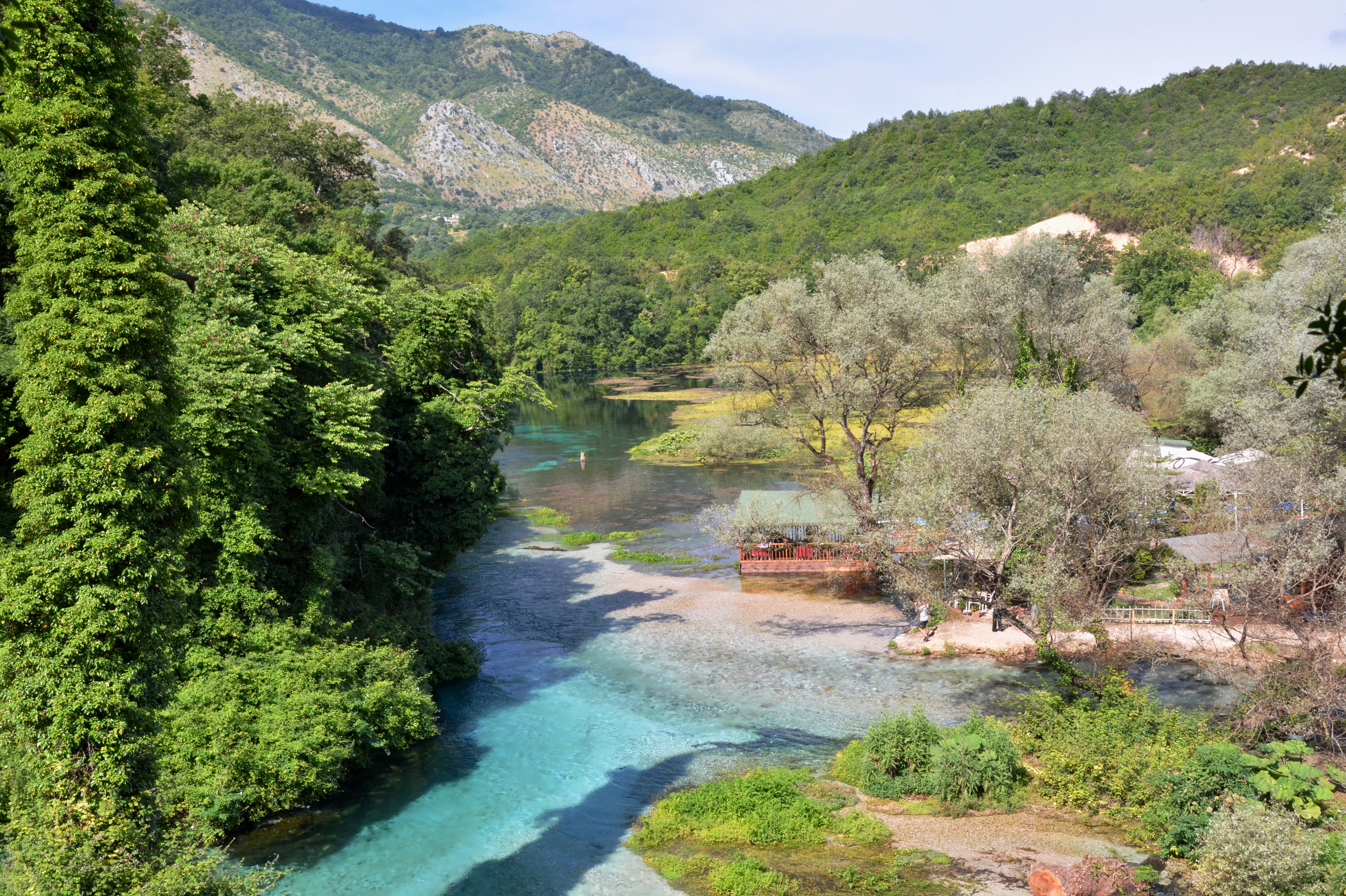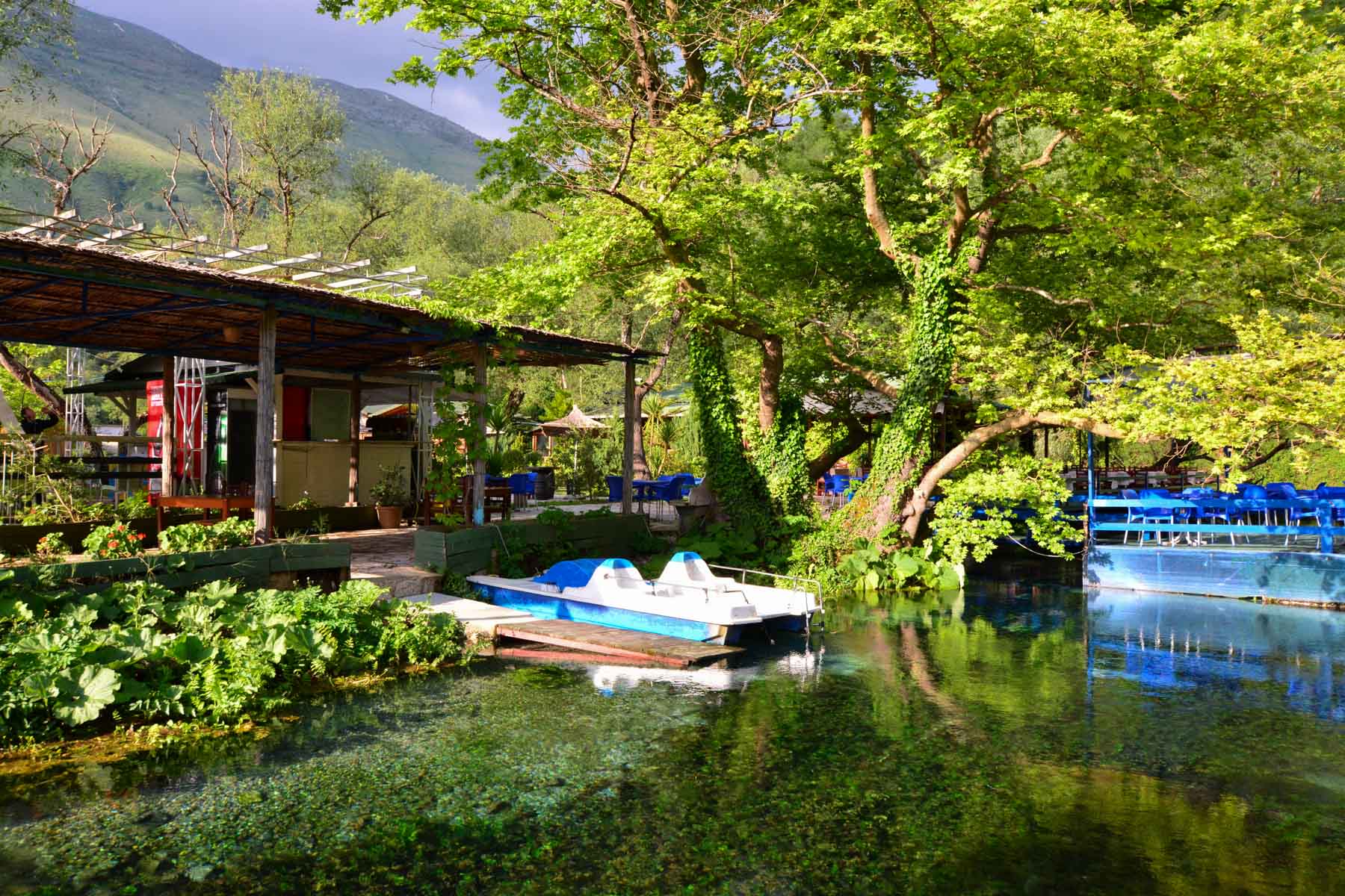 Der Ansturm hat noch zugenommen, seitdem der Quelltopf auch bei den Albanern selbst zum beliebten Ausflugsziel geworden ist. Nachdem die meisten heute die Möglichkeit haben, reisen viele Albaner gerne, um ihr Land kennenzulernen. Jahrzehntelang war es ihnen verwehrt. Im Sommer ist der Ansturm mitunter so hoch, dass PKWs und Busse an der neu errichteten Schranke des Parkplatzes abgewiesen werden. In den alten Eichen- und Platanenhainen am Wasser sind neue Kioske und Souvenirläden entstanden und einen Aussichtsplatz auf der Plattform über der Quelle muss man sich erkämpfen. Hat man nicht die Möglichkeit, im Frühjahr oder Herbst hierher zu kommen, wenn es deutlich ruhiger zugeht, sollte man zumindest die Wochenenden meiden. Wenn auf der Plattform kein Trubel herrscht, kann der Blick in das tiefe blaue Auge zum meditativen Erlebnis werden.