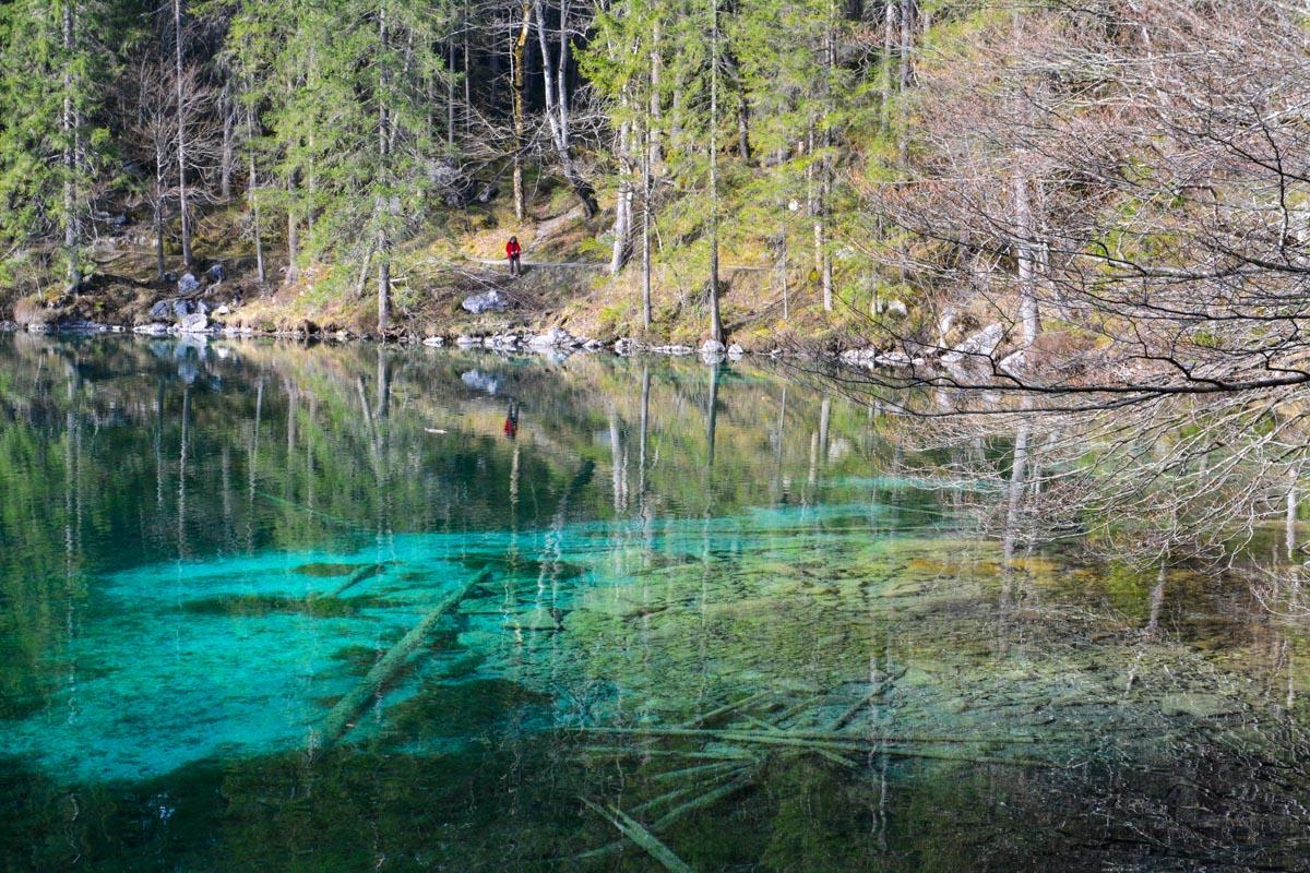 Rund um den See führt ein kurzer, aber sehr schöner Spazierweg von gut zehn Minuten. Vom Norden ist als Hintergrund das Zugspitzmassiv zu sehen, im Süden spiegelt sich das am See gelegene Hotel, bei dem man sich ein Ruderboot mieten kann. Besonders unterhaltsam sind die Fische im Wasser, die sich zumeist am nördlichen Ufer aufhalten und unter denen so mancher feiste Methusalem mit zerfledderten Flossen zu finden ist, der seine 20 Jahre und mehr auf dem Buckel hat. Feinde gibt es in diesem Paradies keine. Allenfalls werden ritualisierte Rangkämpfe um die Alpha-Position bei Forellen und Erpeln ausgetragen, die das Wasser in Wallung bringen und dafür sorgen, dass keine Langeweile unter dem Getier aufkommt.