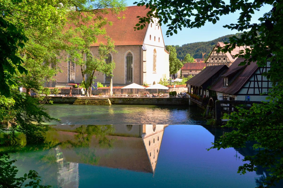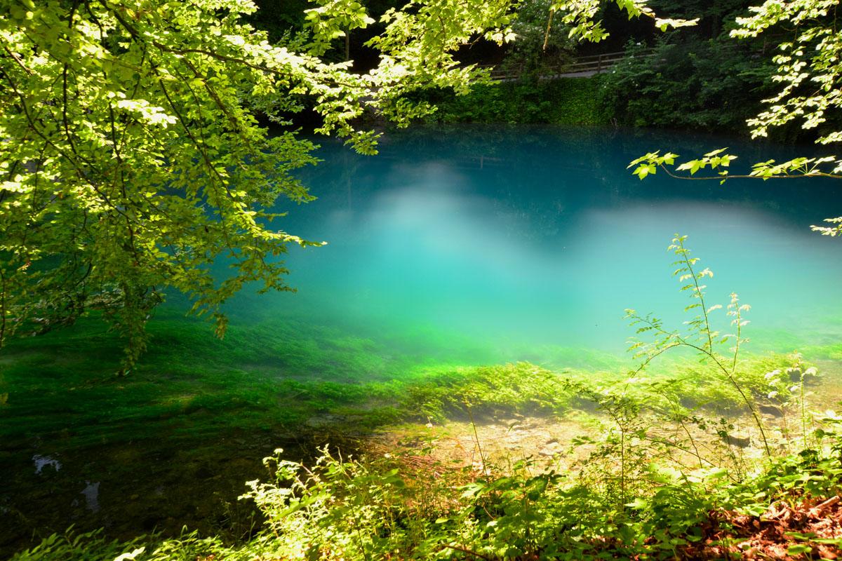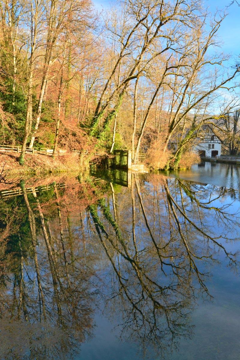 Wer Zeit mitbringt, sollte sich auch auf den Weg zu den so andersartigen, aber ebenfalls eindrucksvollen Siebenbrunnen machen. Ein wahres Kontrastprogramm zum oft überlaufenen Blautopf. Die Luftlinie nur etwa 1,5 Kilometer südöstlich gelegenen Quellen sickern in einem weitläufigen, naturbelassenen Quellareal aus, das man fast sicher ganz für sich alleine hat.