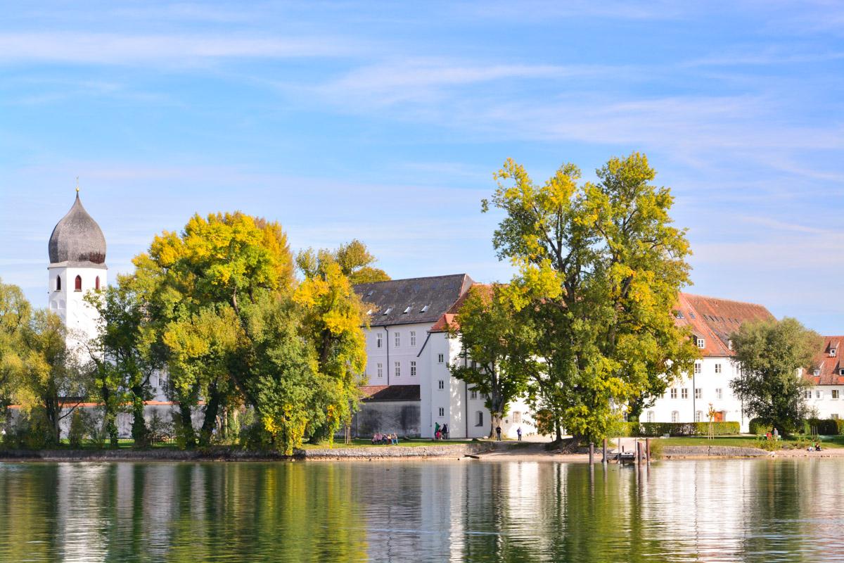 Der Chiemseerundweg gilt nicht zu Unrecht als eine der schönsten (und meistbefahrenen) Radstrecken in Bayern. Er führt zumeist ufernah und ohne nennenswerte Steigungen am See mit seinen zahlreichen Bademöglichkeiten entlang und gibt dabei wunderbare Blicke auf die Chiemgauer Alpen frei. Unterwegs kann man von fünf verschiedenen Orten aus mit Booten Abstecher zur Herreninsel mit Königsschloss und weitläufigen Parkanlagen machen oder man schippert auf die charmante Fraueninsel mit ihrem ehrwürdigen Münster, mit karolingischem Torbogen und bunten Fischerhäusern. Unter bestimmten Einschränkungen können dabei auch Räder mitgenommen werden, sodass sich die etwa 55 Kilometer lange Seeumrundung abzukürzen lässt.