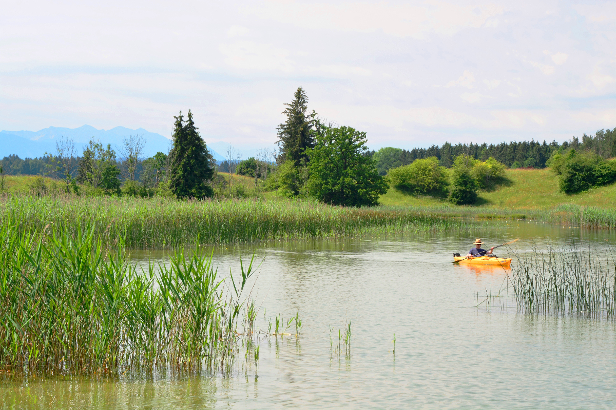 Die Osterseen gehören zu den beliebtesten Ausflugszielen des Voralpenlandes. In jeder Jahreszeit und bei jeder Wetterlage präsentiert sich diese Landschaft in einem anderen Gewand: mal als "blaues Land" mit Fernblick auf die Berge, als blühende Wiesenlandschaft, nebelverhangen oder winterlich. Da in einem Großteil des Gebietes das Grundwasser wenig unter der Oberfläche ansteht, finden sich neben Wäldern und Wiesenland auch anmoorige Bereiche, Niedermoor- und Hochmoorböden, was die Landschaft sehr abwechslungsreich macht. Auch die Farbe der Seen ändert sich ständig. Charakteristisch sind die hellgrünen Bereiche, die durch einen sandig-lehmigen Untergrund entstehen, und wegen derer manch einer von der "Karibik" vor den Toren Münchens spricht.