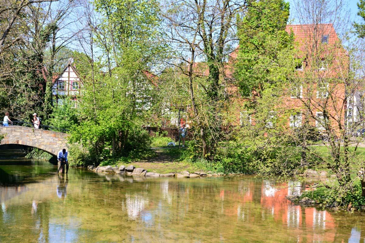 Wesentliche Quellen lernt man bei einem Spaziergang durch die Altstadt Paderborns kennen, der sich gut mit dem Besuch von einigen der zahlreichen historischen und kulturellen Sehenswürdigkeiten verbinden lässt. Lohnend ist auch der Besuch der Fischteiche an der Dubelohstraße und des Padersees, von dem aus ein Weg entlang der Pader zu Schloss Neuhaus führt, bei dem Pader und Alme als zwei wichtige rechte Nebenflüsse in die Lippe münden. Wer mit Wohnmobil nach Paderborn reist, findet einen geeigneten Stellplatz und guten Ausgangspunkt etwas nördlich der Altstadt (51.727996, 8.745290)
