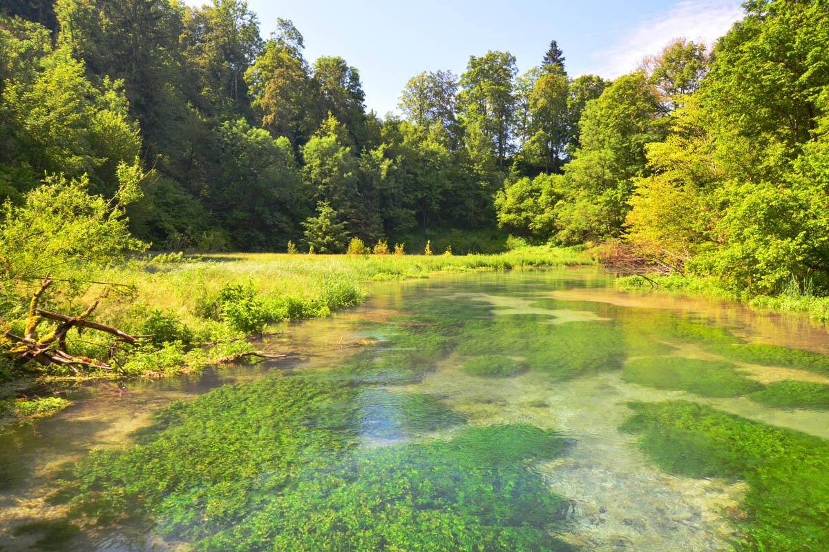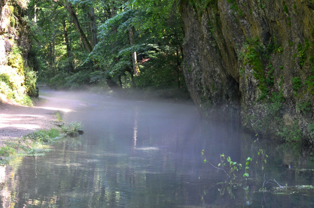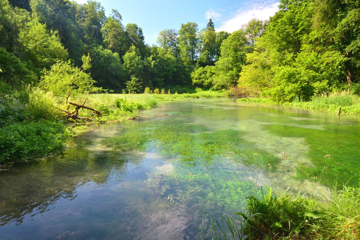 Das Gleiche gilt für Genießer, die sich einfach genügend Zeit für diese wunderschöne Gegend mit ihren herrlichen Bächen nehmen und da und dort eine Rast einlegen wollen. Sie werden im glasklaren Wasser nicht nur Rasen aus kräftigen und gesunden Wasserpflanzen entdecken, sondern auch zahlreiche Fische, Amphibien und Vögel. Wer unterhalb der Wimsener Höhle aufmerksam in das sandige Bett der Zwiefalter Ach sieht, erkennt zahlreiche kleine Löcher mit Unterwasserquellen, an denen das austretende Wasser den Sand in unablässiger Bewegung tänzeln lässt. Auf den Wiesen und an den Ufern wachsen vielfältige Blumen und Wildkräuter, im Herbst bricht sich das Sonnenlicht im Tau auf Spinnennetzen, mit etwas Glück sieht man einen Eisvogel vorbeiflitzen.