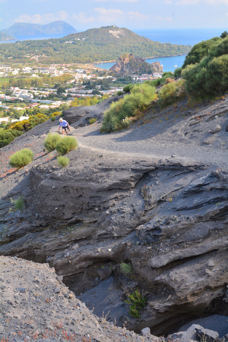 Wie gebirgig auch die kleine Insel ist, merkt man spätestens, wenn man sie von Vulcano Porto im Norden bis zum Strand bei Faro di Gelso im Süden mit dem Rad durchquert. Auf den 27 Kilometern für Hin- und Rückweg sind mehr als 800 Höhenmeter zu bewältigen - wer die Kondition aufbringt, den erwartet aber eine landschaftlich außerordentlich schöne Tour mit nur geringem Straßenverkehr.