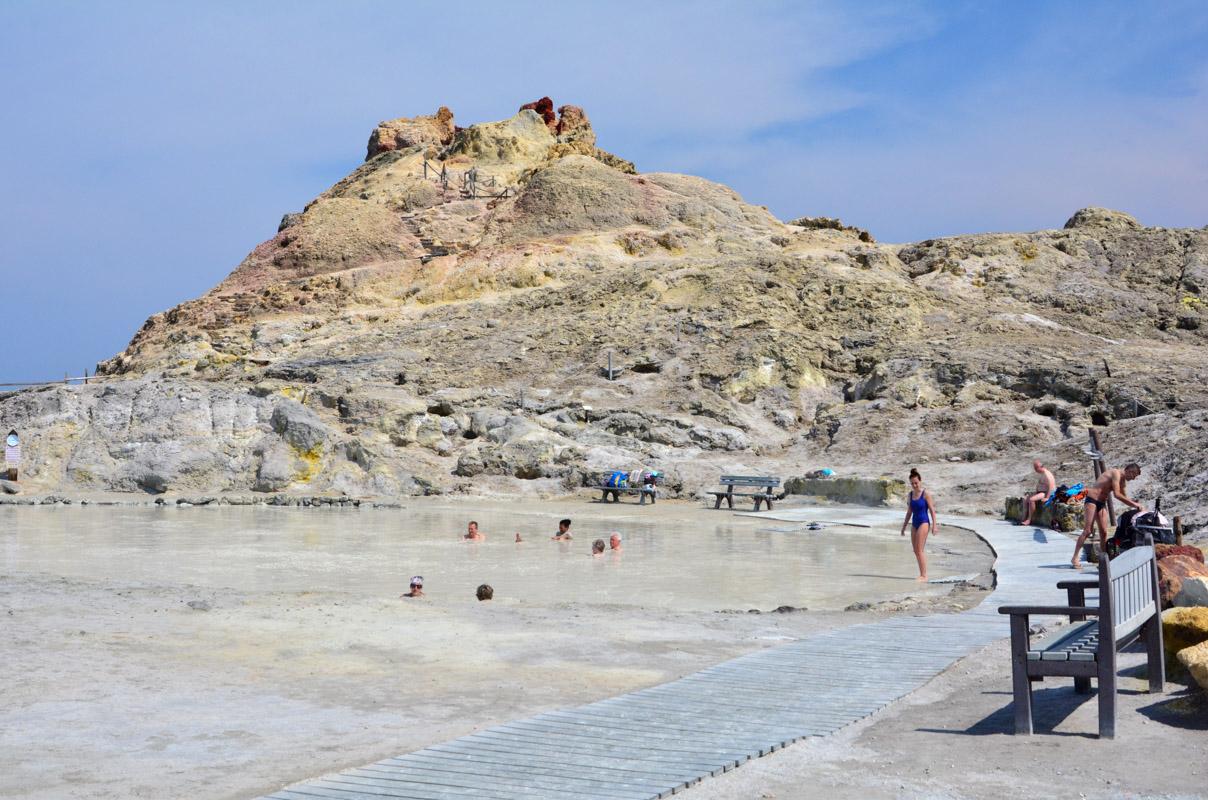 Die bekannte "Pozza" (Schlammbad) in direkter Nähe des Meeres wird gespeist von Brackwasser und Tonschlamm, die zusammen mit schwefeligen Gasen austreten und wohltuend wirken auf den Bewegungsapparat, Haut und Lunge. Ihre Wirksamkeit merkt man zuerst daran, dass ein Bad im Schlamm bei zu langer Dauer anstrengend wird und den Kreislauf belastet. Es wird deshalb davon abgeraten, sich länger als 10 bis 15 Minuten im Schlamm aufzuhalten. Die zahlreichen Unterwasserfumarolen im Meer, die teilweise unter beachtlichem Druck austreten, sind hingegen nicht belastend.