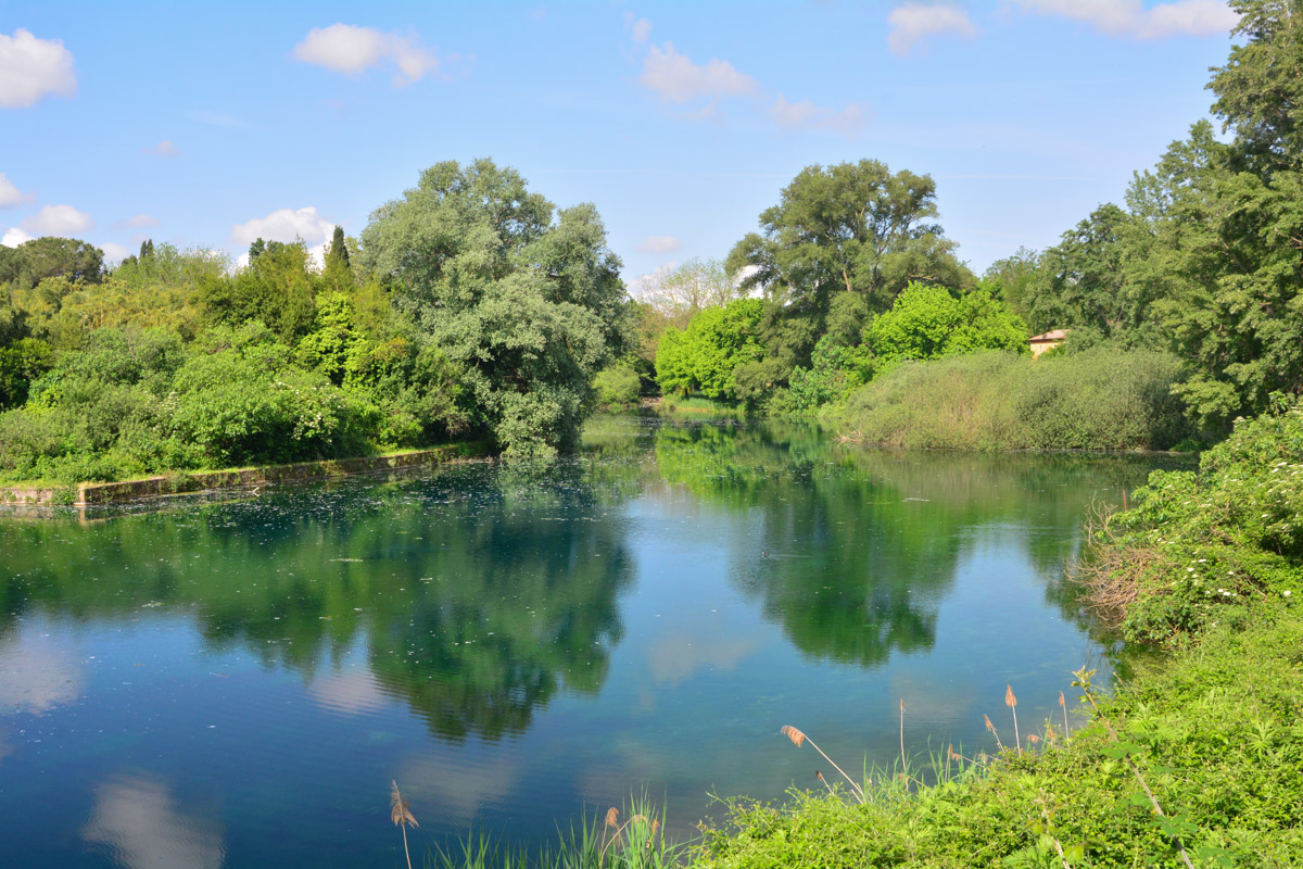 Wer sich den Trubel nicht antun möchte, kann sich aber jedenfalls den schönen Quellsee vor den Mauern des Parks mit der herrlichen Silhouette der Ruinen von Ninfa ansehen, bei dem es allerorts sprudelt und blubbert. Verfügt man über ein Rad, kann man eine sehr schöne Tour durch die quellenreiche Umgebung machen. Einige der Quellen sind gut zu erreichen, andere von Sumpf umgeben und nur schwer zu erreichen.