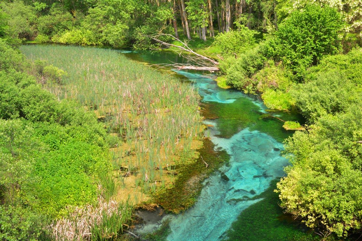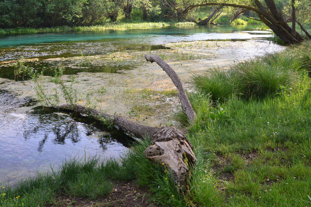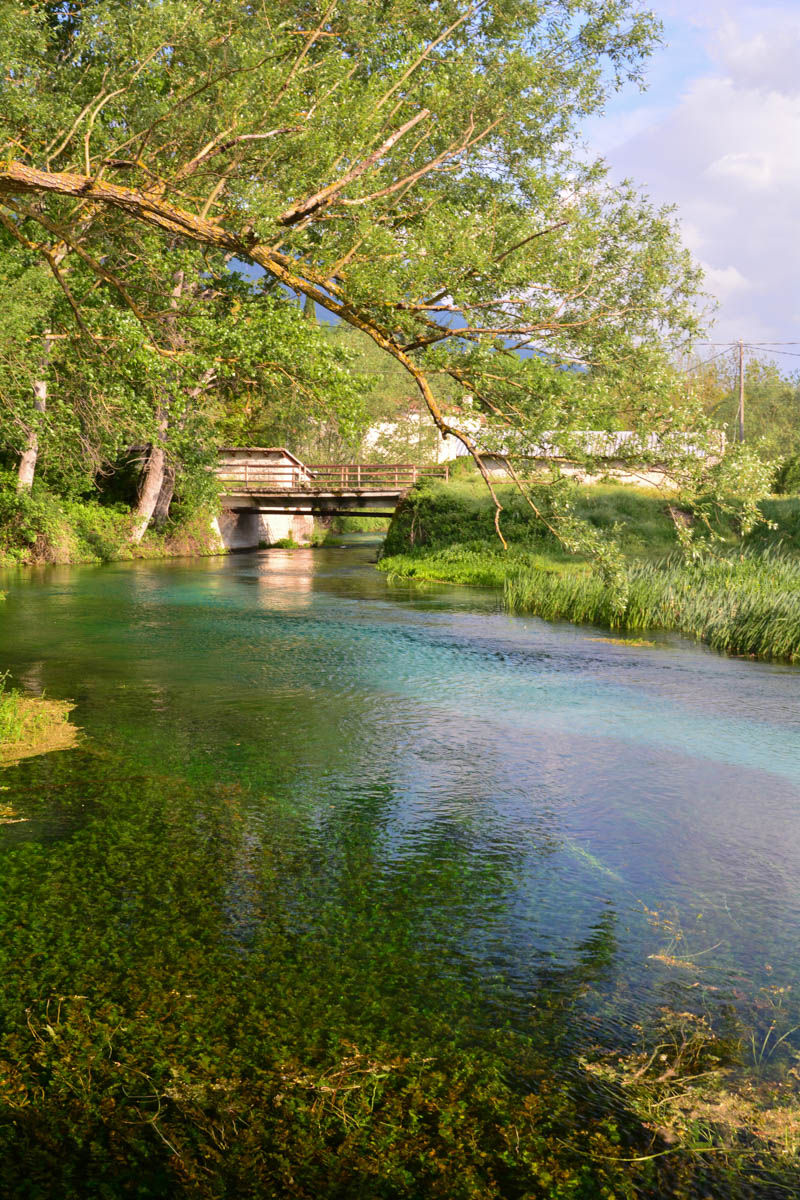 Die Wasseraustritte des d'Acqua-See sind die stärksten von insgesamt drei Quellen, die den Fiume Tirino bilden. Die Quellen von Presciano und dem kleinen See unterhalb von Capestrano führen in den letzten Jahren immer weniger Wasser, sind aber noch immer herausragend schön. Um den Wasserläufen ein Stück weit folgen zu können, muss man sich durch das verfilzte Gehölz schlagen, von dem sowohl der Fluss Tirino wie auch die Arme seiner Nebenquellen über weite Strecken umgeben sind. Als Alternative bietet sich eine etwa fünf Kilometer lange Flussfahrt mit einem Kanu an, wie sie in Capestrano angeboten wird.