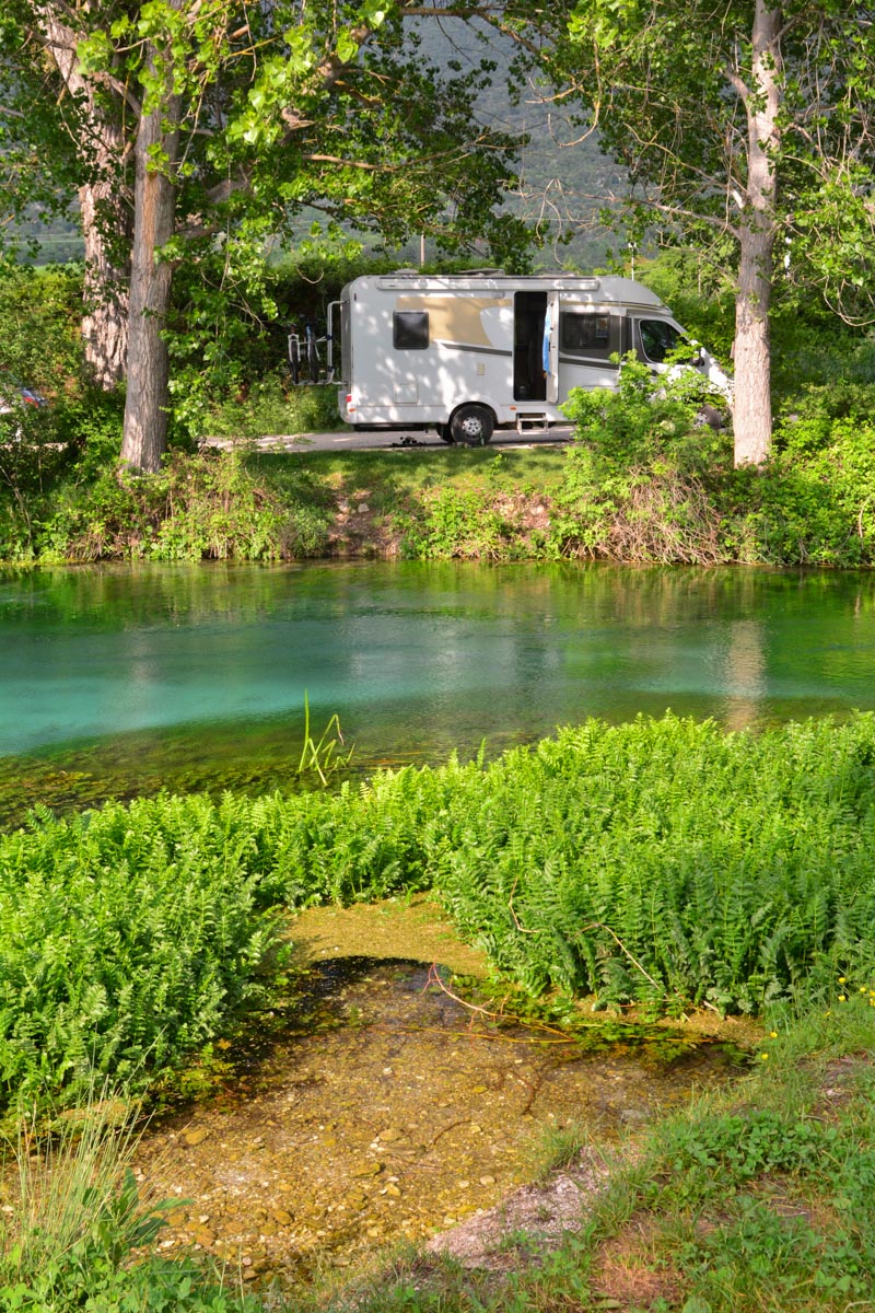 Der in etwa 300 Meter Höhe gelegene Capo d'Acqua in der Nähe von Capestrano ist ein kleiner Stausee im Nationalpark Gran Sasso. Er befindet sich in Privatbesitz und ist umzäunt, wodurch ein Zugang nicht möglich oder genauer: gebührenpflichtig ist.