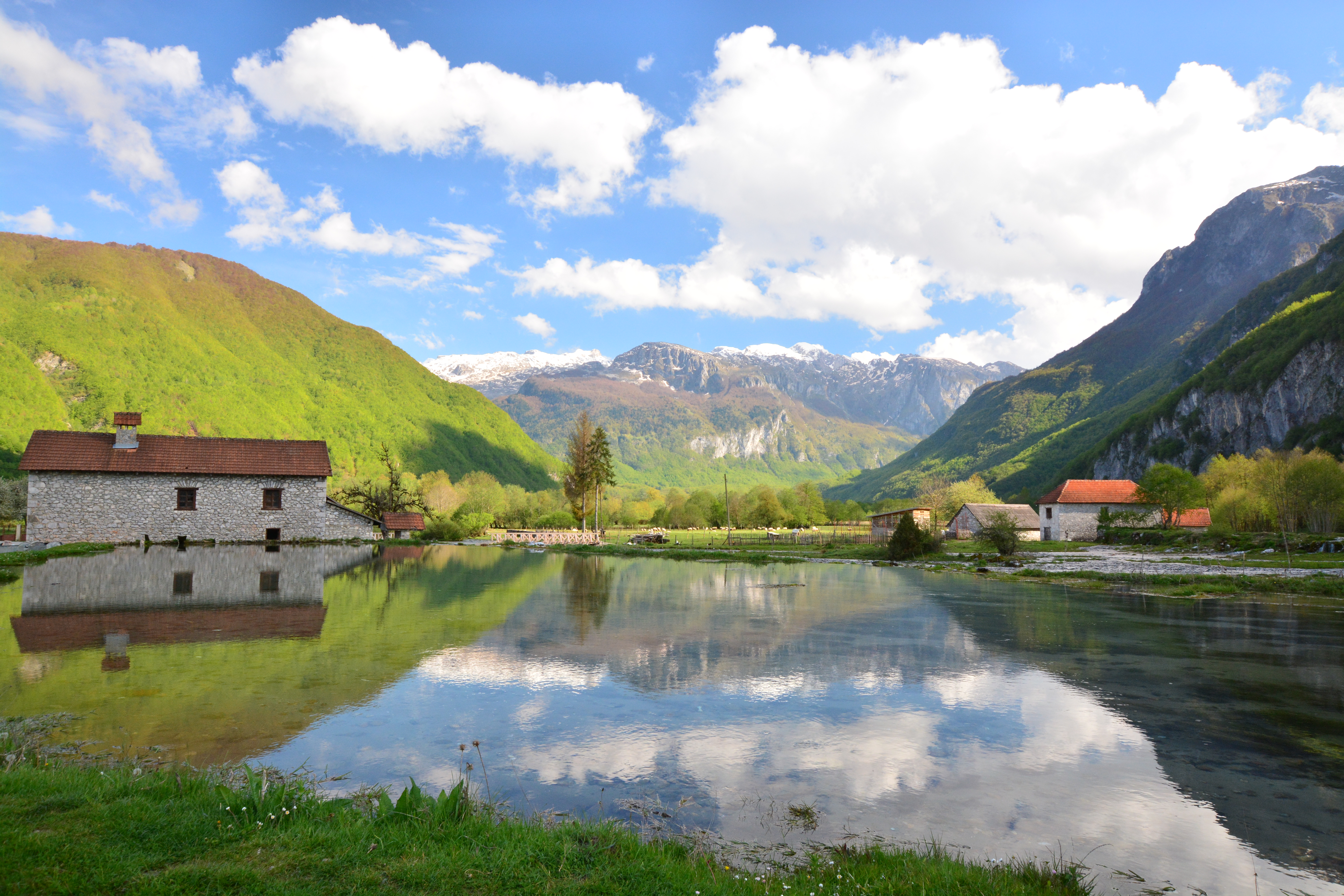 Die Ali Pascha Quellen liegen in knapp 950 Meter Höhe nahe der Grenze zu Albanien in einem der landschaftlich reizvollsten Gebiete Montenegros. Die Hochebene, an deren Rand sie entspringen, ist nach allen Richtungen hin umgeben von hohen und markanten Bergen, die im Frühjahr noch lange weiße Schneekappen tragen. Erstaunlich, dass das Gebiet um den Ort Gusinje und den See von Plav für ausländische Reisende noch immer ein Geheimtipp ist, obwohl die Straße vom Skutarisee hoch die Erreichbarkeit seit einigen Jahren wesentlich verbessert hat.