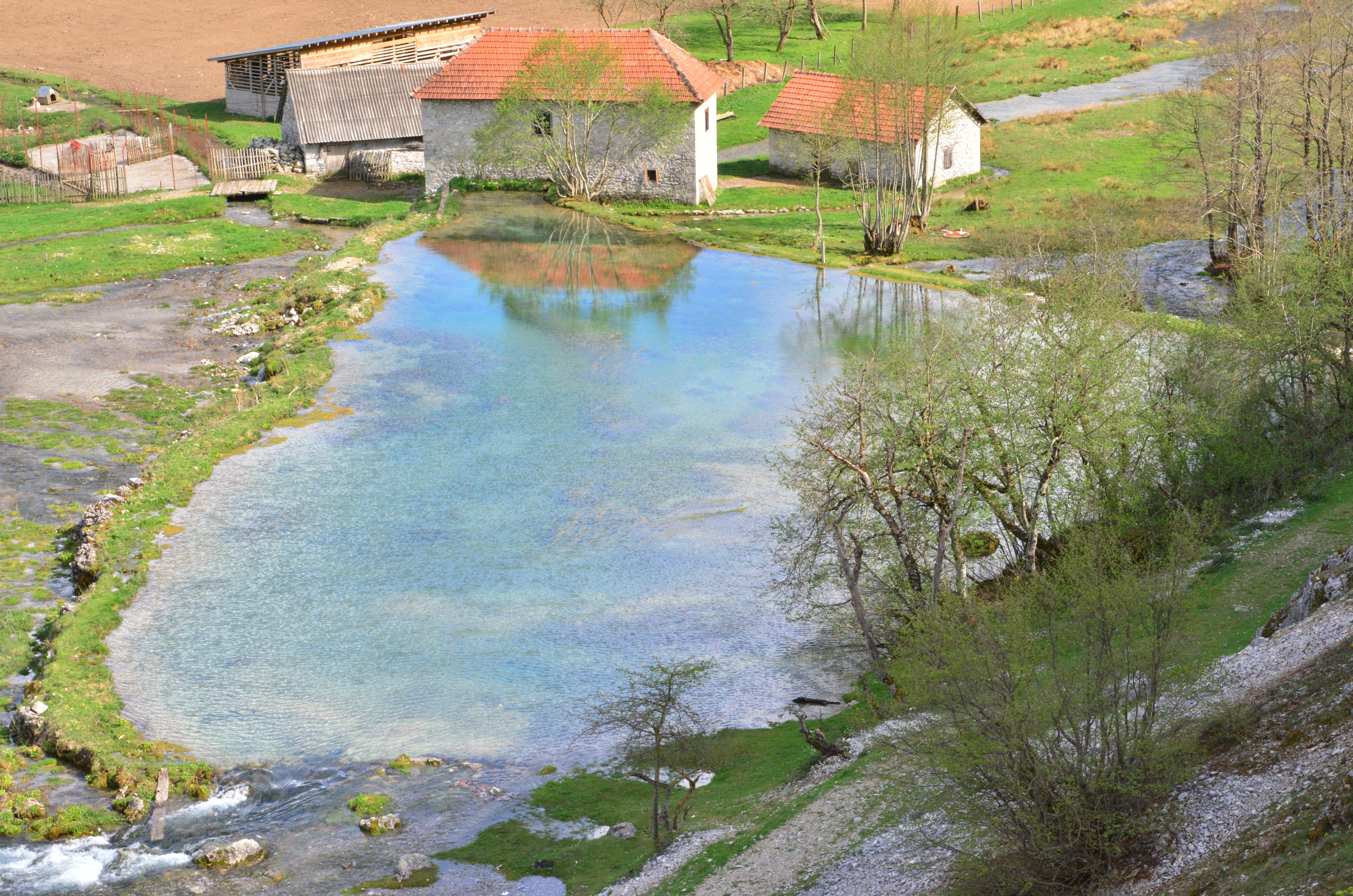 Auf etwa drei Kilometer Länge und an etwa 20 Stellen tritt das Wasser südlich von Gusinje am Fuß des Prokletije-Massivs aus einem Quellhorizont. Von den häufig besuchten Hauptquellen führt ein sehr schöner Pfad am Fuß des Bergmassivs an einigen Nebenquellen vorbei nach Süden. Die letzte der Quellen heißt Oko (Auge). Sie entspringt an einem idyllischen Platz unter einer Steilwand aus einer Kluft und aus dem Grund eines kleinen Quellteichs. Der abfließende Quellbach hat ehemals eine Mühle angetrieben, deren Resten noch zu sehen sind.