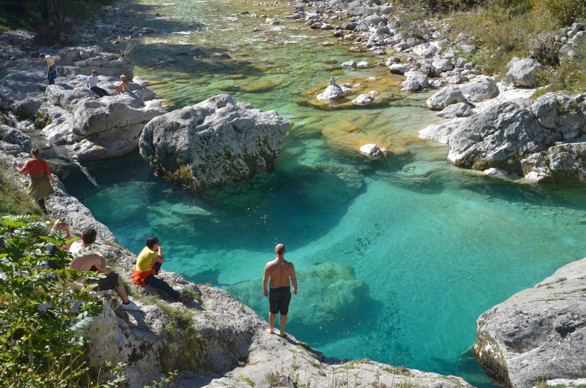 Die Soca ist gleichermaßen beliebt bei Wanderern, die den berühmten Soca-Weg mit seinen malerischen Hängebrücken gehen, bei Kajakfahrern und bei Sportanglern auf der Jagd nach der endemischen, marmorierten Forellenart "Marmorata". Viele wollen auch einfach ein Stück ursprüngliche Natur kennenlernen, einen noch unverbauten Wildfluss mit reicher Flora und Fauna an seinen Ufern.
