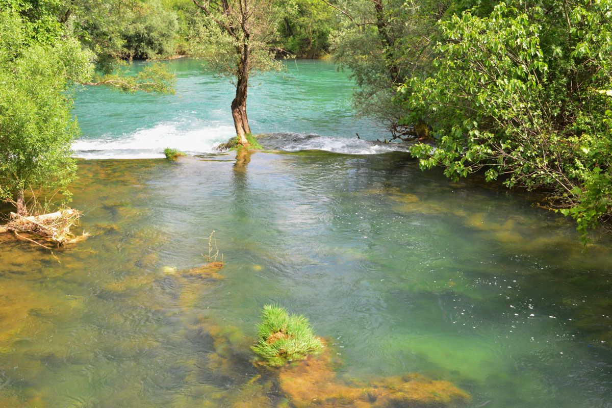 Die Tuffkaskaden der kleinen Insel Kupaliste Bozijak sind einer der Plätze am Trebizat, die man bequem anfahren kann. Die Straße von Süden nach Norden quert die Insel und es finden sich direkt am Ufer zwei Restaurants in schöner Lage. Von hier aus kann man den Fluss ein wenig erkunden und ihn am südlichen Ufer nach beiden Seiten einige hundert Meter begleiten. Einen durchgängigen Wanderweg gibt es jedoch auch hier nicht.