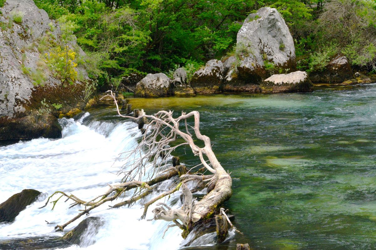 Der größte Wasserfall "Veliki Vodopad" liegt mitten im Ort. Um ihn sehen zu können, wird ein kleines Eintrittsgeld erhoben. Dafür sind Wege und Aussichtsterrassen angelegt, von denen aus man sehr schöne Blicke auf das tosende Spektakel hat. Von hier aus kann man noch ein Stück weiter hoch ins Dorf gehen und verschiedene Wasserläufe mit alten Getreidemühlen besichtigen, die hier in der Gegend überwiegend als Flodermühlen mit horizontalem Wasserrad erbaut wurden.