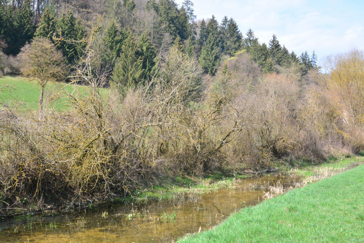 Wenig unterhalb läuft ihr von links die Schippach bzw. das Maxquellbachl zu. Zwei Kilometer unterhalb von Warching versickert der Bach dann bei einem Rückhaltebecken in Dolinen der Monheimer Alb. Bei niedrigen Grundwasserständen zieht er sich komplett unter sein Bett zurück, während im Winter der Abfluss so hoch ist, dass der Bach auch hier etwas Wasser führt.