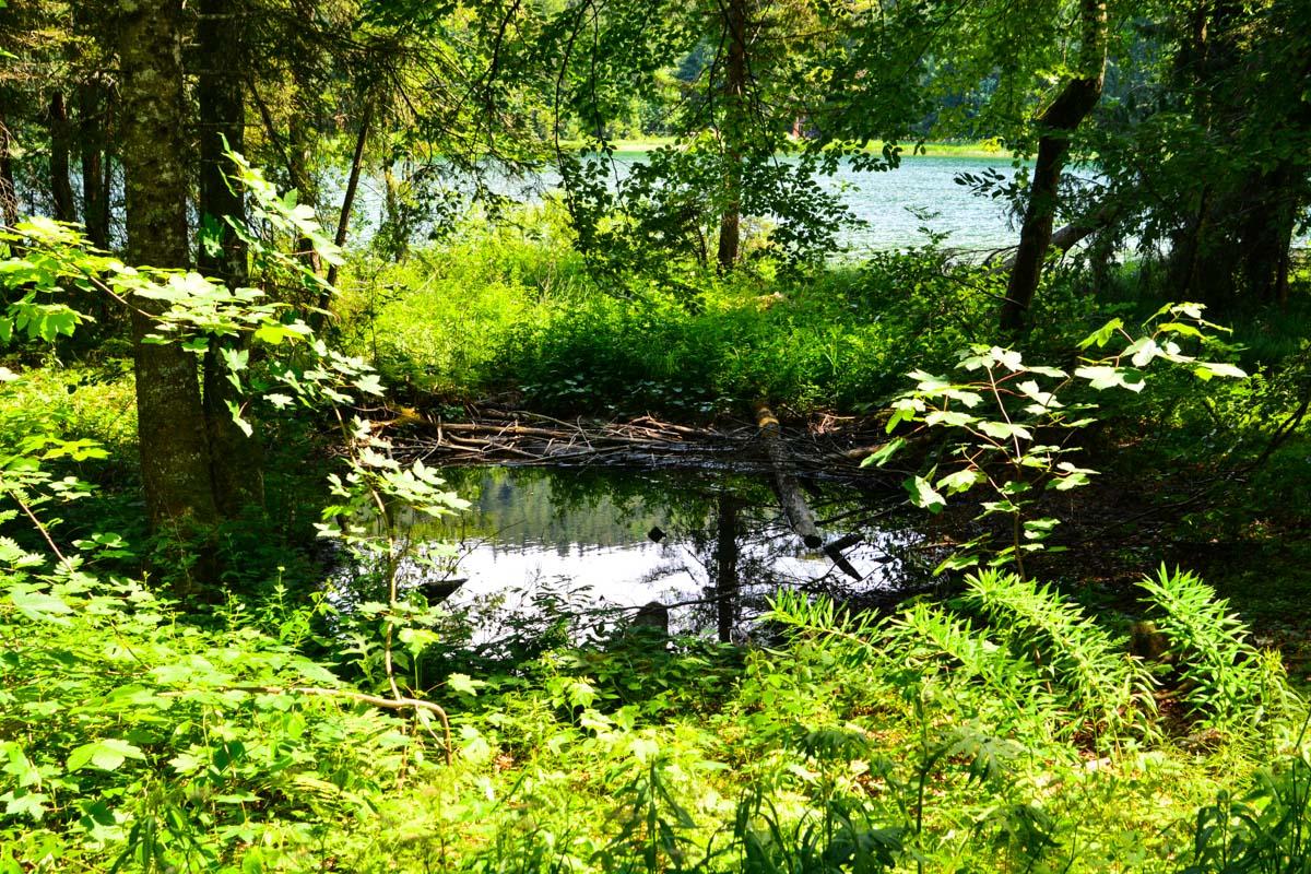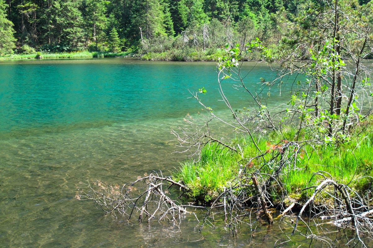 Weiter führt der gut fahrbare Forstweg durch das Weittal zum Falkensee, der von einigen Quellen gespeist wird und tiefgrünes, glasklares Wasser hat. Dem Falkenseebach folgend gelangt man zu einem Abzweig zu dem etwas düsteren Krottensee, der aus Gründen des Naturschutzes nicht zugänglich und nur aus einiger Entfernung zu sehen ist. Wegen der schönen Feuchtwiesen, die den See umrahmen, lohnt der kleine Abstecher aber trotzdem.