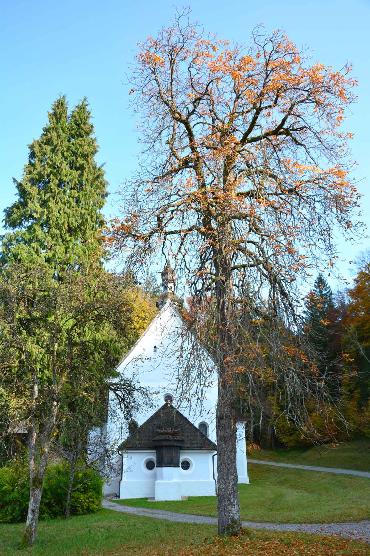 Wer sich für Plätze mit interessanter Geschichte interessiert, kann von Nussdorf her zunächst am Mühlenweg und dann weiter einen Pilgerweg mit 14 Kreuzwegstationen hoch zur Enzianwiese nehmen. Er führt vorbei an der 1720 im Rokoko-Stil erbauten Wallfahrtskirche Maria Einsiedel. Sie ist hervorgegangen aus einer früheren Einsiedelei in einer Höhle, der "Quarantan" (47.743200, 12.177100; im Volksmund das Wort für Quarantäne). In deren Nähe gibt es auch einen alten Stollen, dessen Gips in den Nussdorfer Mühlen verarbeitet wurde, sowie einen "Schlupfstein" (47.743017, 12.177017). Der Pfad zu den Höhlen zweigt bei Mariä Heimsuchung ab, ist aber stark überwachsen und nur für geländeerfahrene Wanderer geeignet.