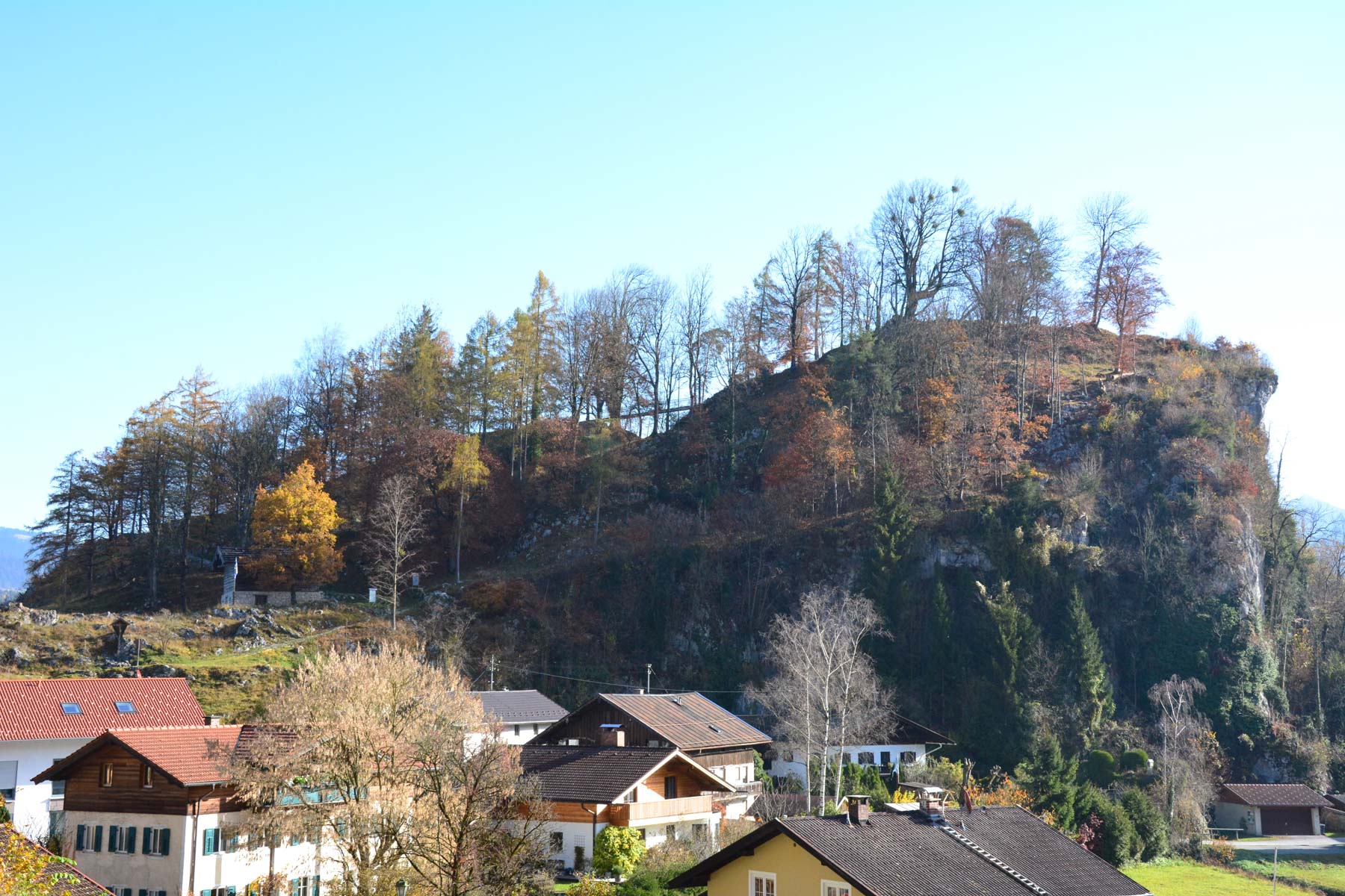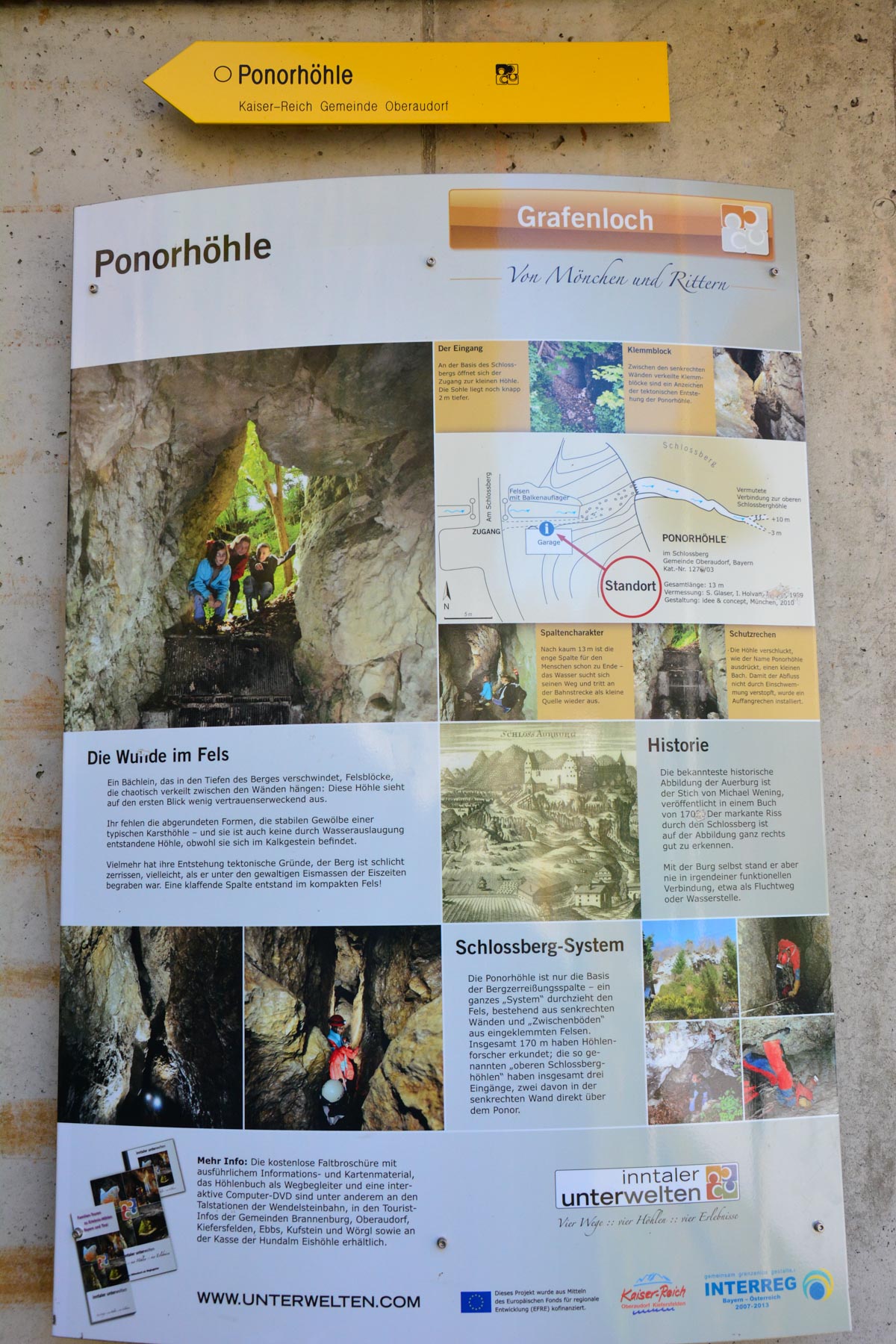 Weiter führt der Weg in Richtung Schlossberg, zu dessen Füssen ein ganzer Bach in einer Ponorhöhle und dem von Höhlensystemen durchzogenen Felsen verschwindet. Oben auf dem Berg liegen die Ruinen der erstmals im Jahr 1329 erwähnten Auerburg, die in ihrer Lage hoch über dem Inntal von großer strategischer Bedeutung war.