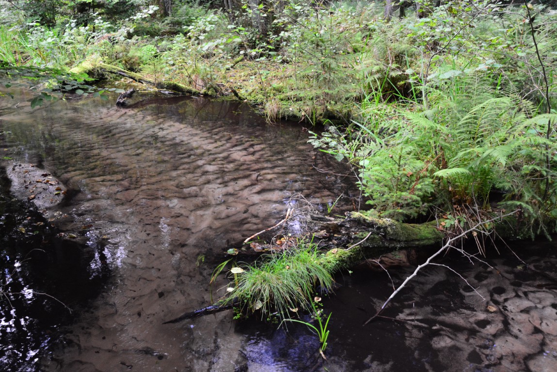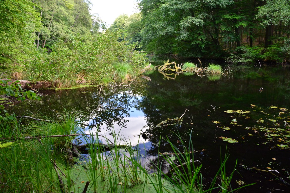 Aus zahlreichen, zum Teil ergiebigen Kesselquellen, die sich wie an einer Perlenkette aneinanderreihen, fließt dem Bach so viel Wasser zu, dass er sich bis zu 25 Meter tief in die Endmoränen- und Sanderlandschaft einkerben konnte. Hilfreich dabei ist ihm seine relativ hohe Fließgeschwindigkeit: auf 1,5 Kilometer Länge fällt das Tal immerhin um sieben Meter ab. So werden auch die organischen Stoffe permanent weggespült und die Bäche präsentieren sich in Abschnitten mit klarem Wasser und sandigem Bett. Erst unten im Kunsterteich ist das Wasser von den Huminstoffen der moorigen Böden und der verrottenden Biomasse dunkel gefärbt.