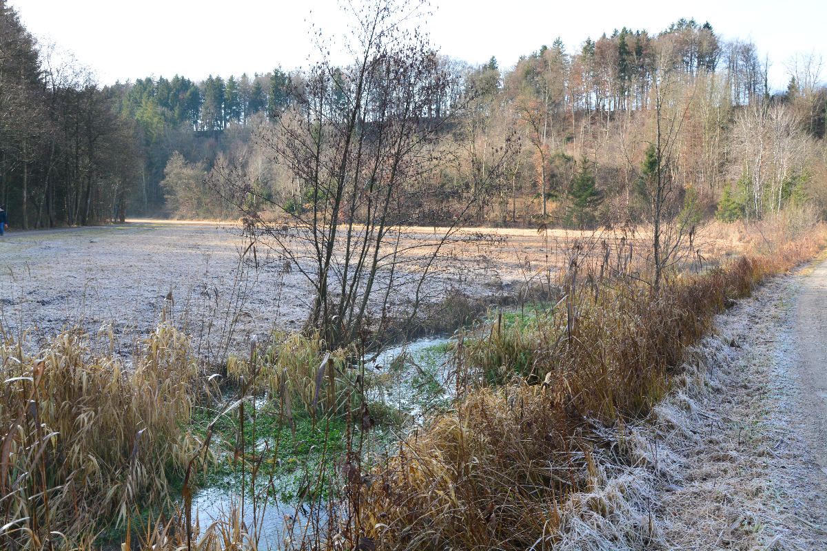 In dem Gebiet treten stark kalkhaltige Quellen mit teils beachtlicher Schüttung aus dem Moränenschotter. Sie liegen zum Teil direkt am Wanderweg, überwiegend aber unzugänglich im dichten Schilf und Ried des Moores in der Niederung, wo sie nur auf Satellitenaufnahmen zu entdecken sind.