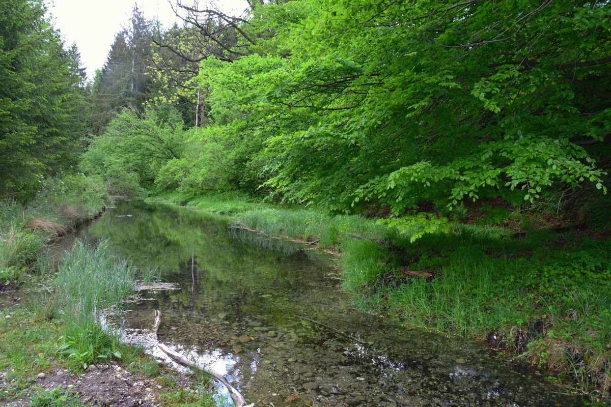 Der Ablauf der vereinigten Quellbäche zur bereits im Jahr 1448 bezeugten ehemaligen Mindelmühle, in der sich heute ein kleines Elektrizitätswerk befindet, ist kanalisiert. Auch der weitere, früher stark mäandernde Flusslauf der Mindel wurde im Lauf der Jahrhunderte zur Gewinnung von landwirtschaftlichem Boden und Wasserkraft immer mehr kanalisiert. So traten im Mindeltal zunehmend starke Hochwässer auf, was immer mehr flüssebauliche Maßnahmen notwendig machte.